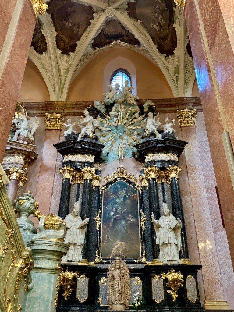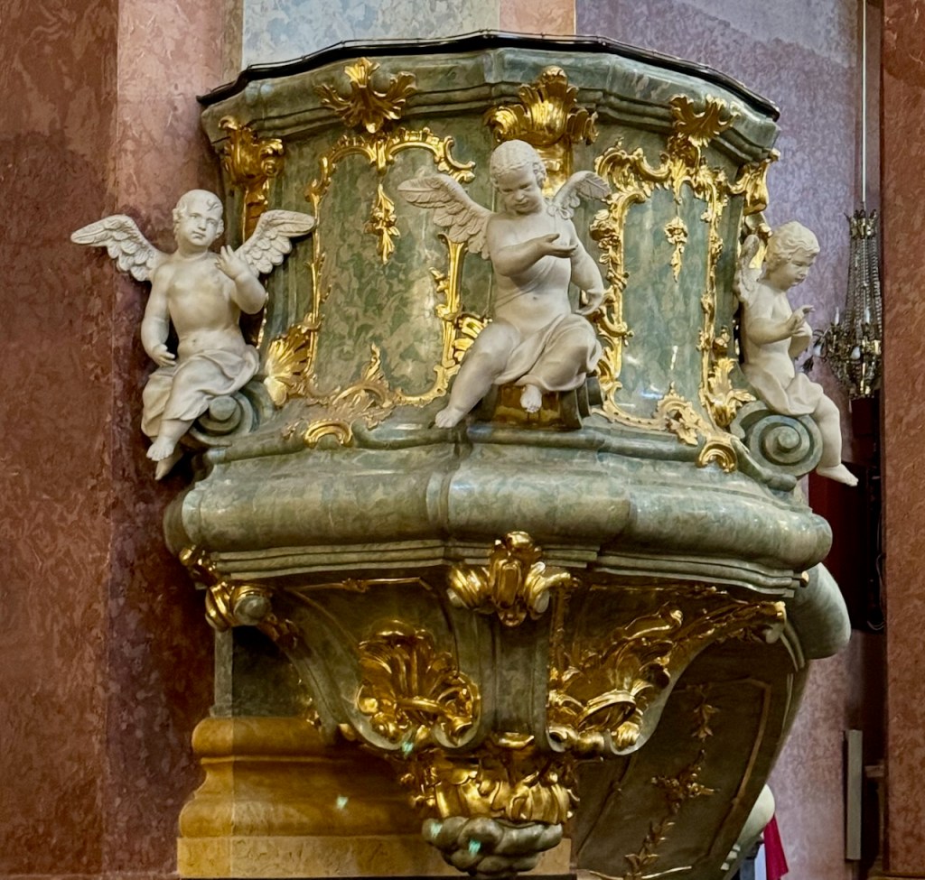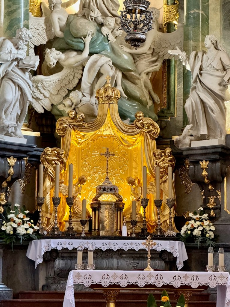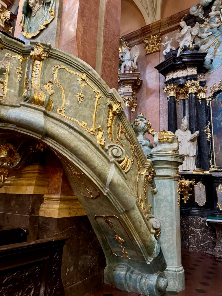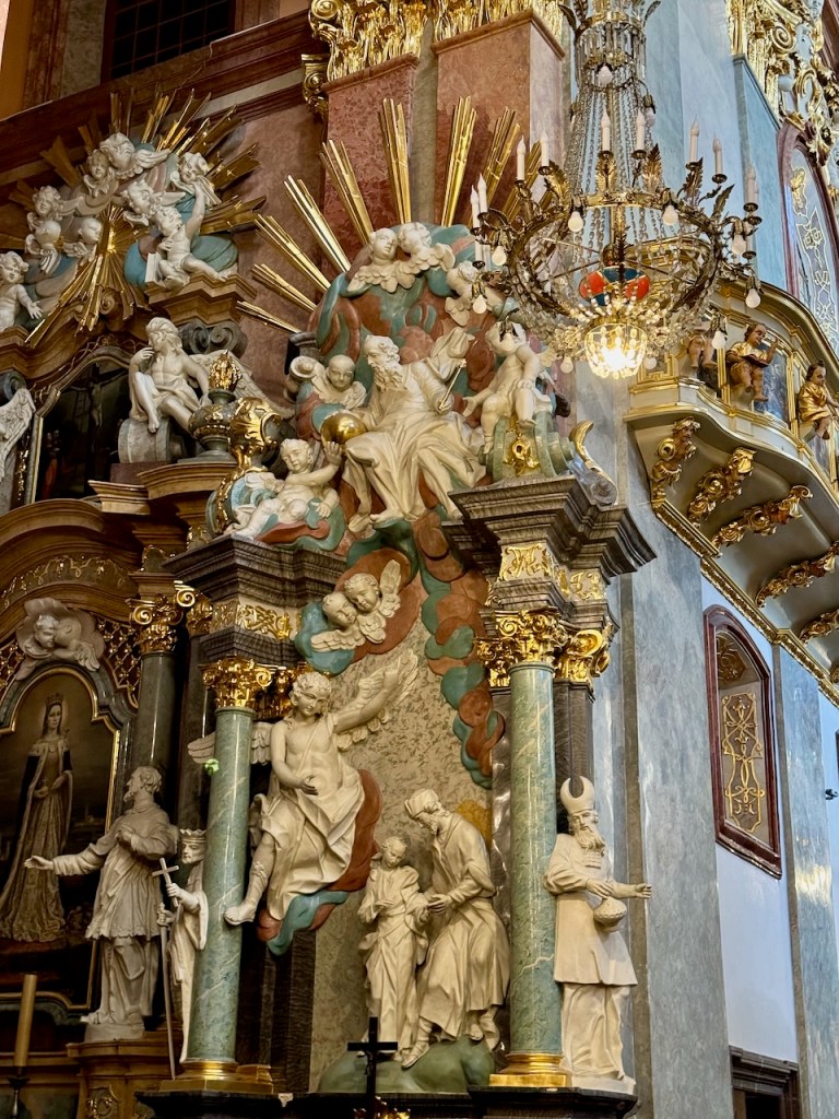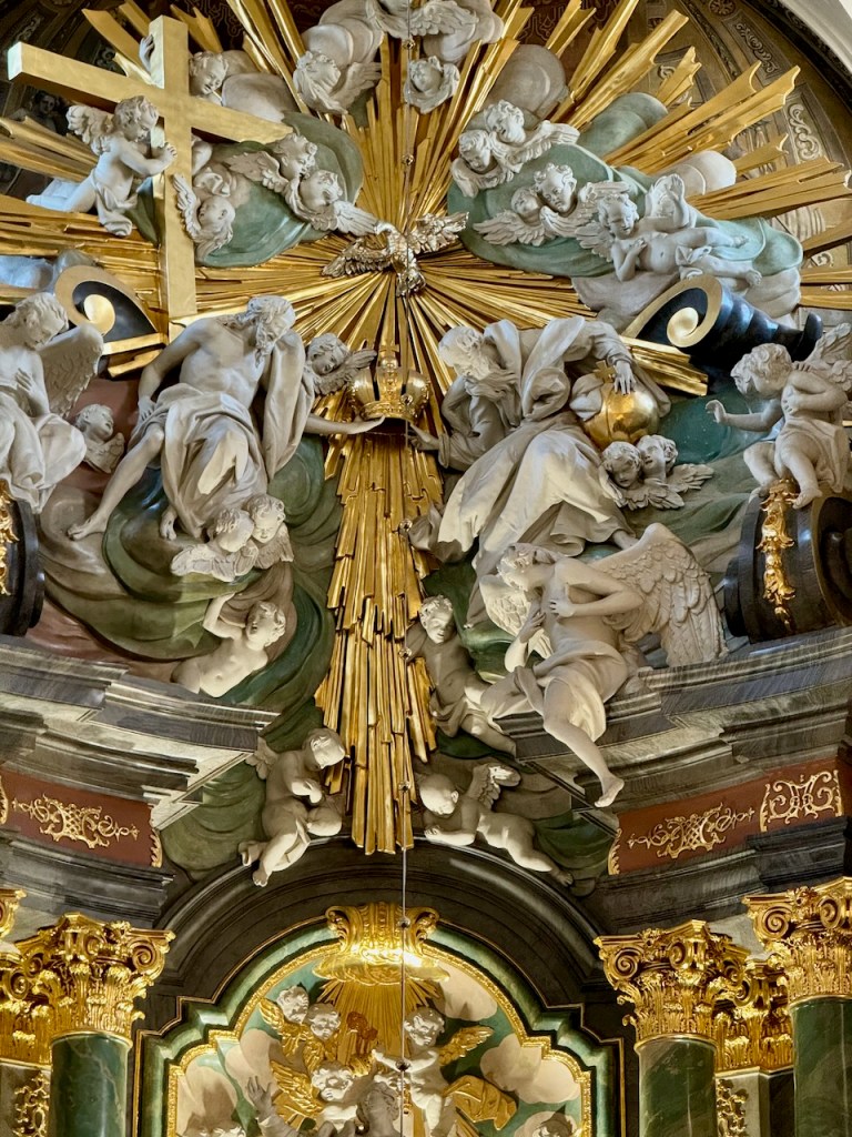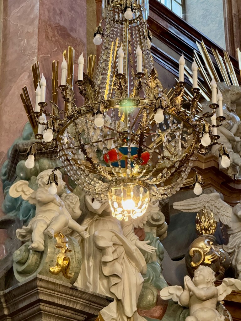Katolisissa kirkoissa on suomalaisiin verrattuna aina hurjan koristeellisia ympäristöjä, mutta kyllä täällä oli niihinkin verrattuna paljon koristeita ja yksityiskohtia. Eilen juuri katselin telkkariuutisissa, miten Tapiolan kirkkoa oli restauroitu. Ihan uskomattomalta näyttivät näihin verrattuna harmaat laajat seinät ilman yhtäkään koristetta. Mekin poikkeamme aina tutkimaan kirkot, kun niihin pääsee sisälle, mutta myös linnat ovat olleet tässä mielessä aivan huikeita..
