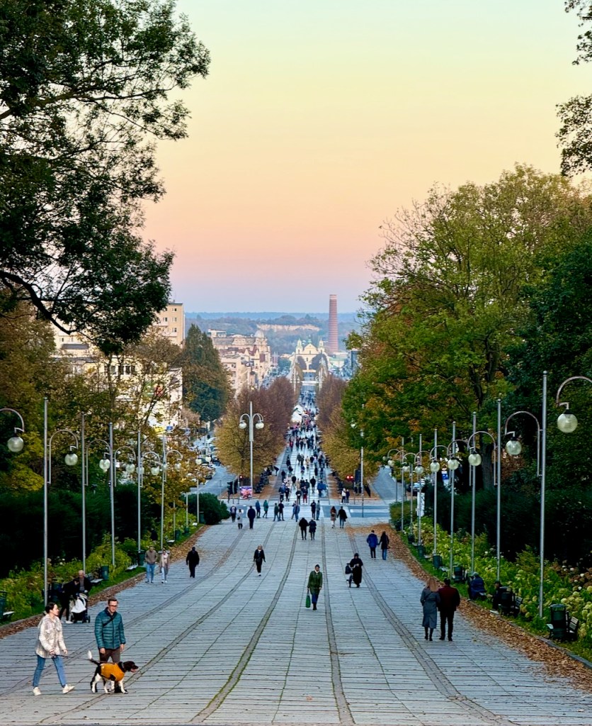 Aukiolta lähti kävelykatu alas Częstochowan keskustaan.