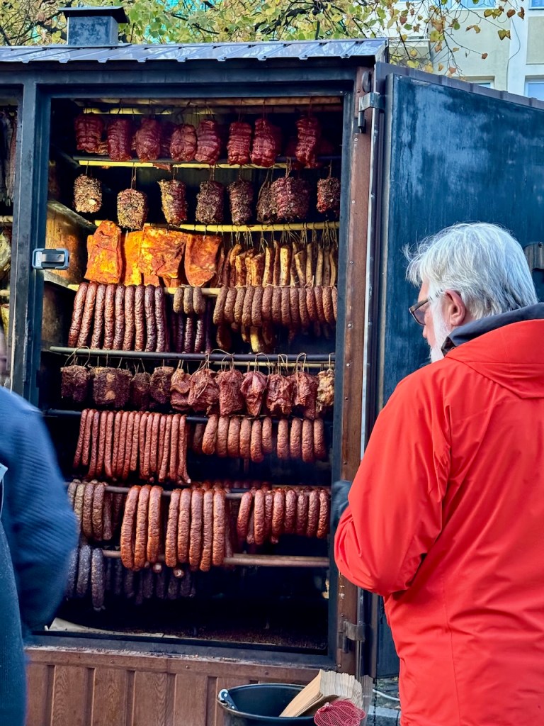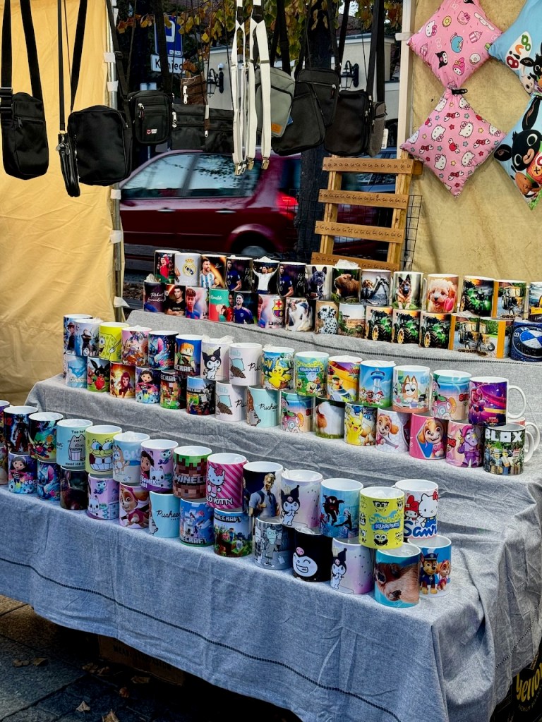 Kävelykatuja jatkaen tulimme alueelle, joka oli täynnä erilaisia myyntipöytiä ja katettuja kioskeja. Kaikenlaista vaatteista, matkamuistoista ja muista tavaroista ruokaan, erityisesti leipää, grillattavaa ja makkaraa löytyi.