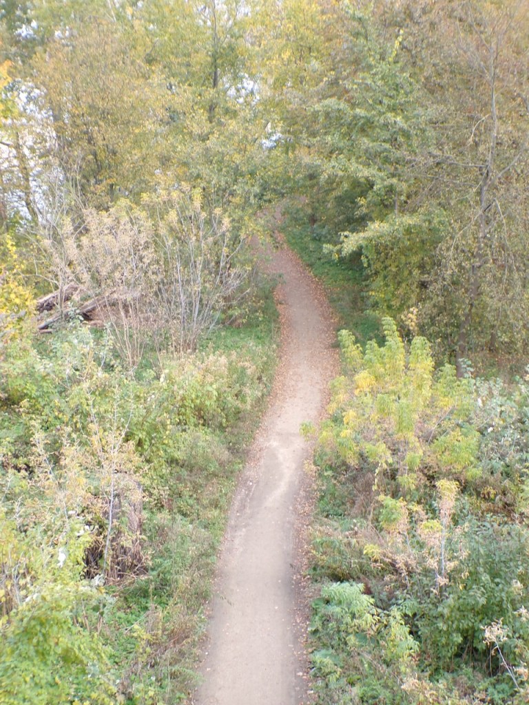 Harkitsin sinne asti kävelyä, mutta kun sillan päässä näin sinne vievän polun, käännyin takaisin. Ei muuten, mutta onko kiva kävellä yksin tällaisella polulla, jonne ei oikein muualta edes näy?