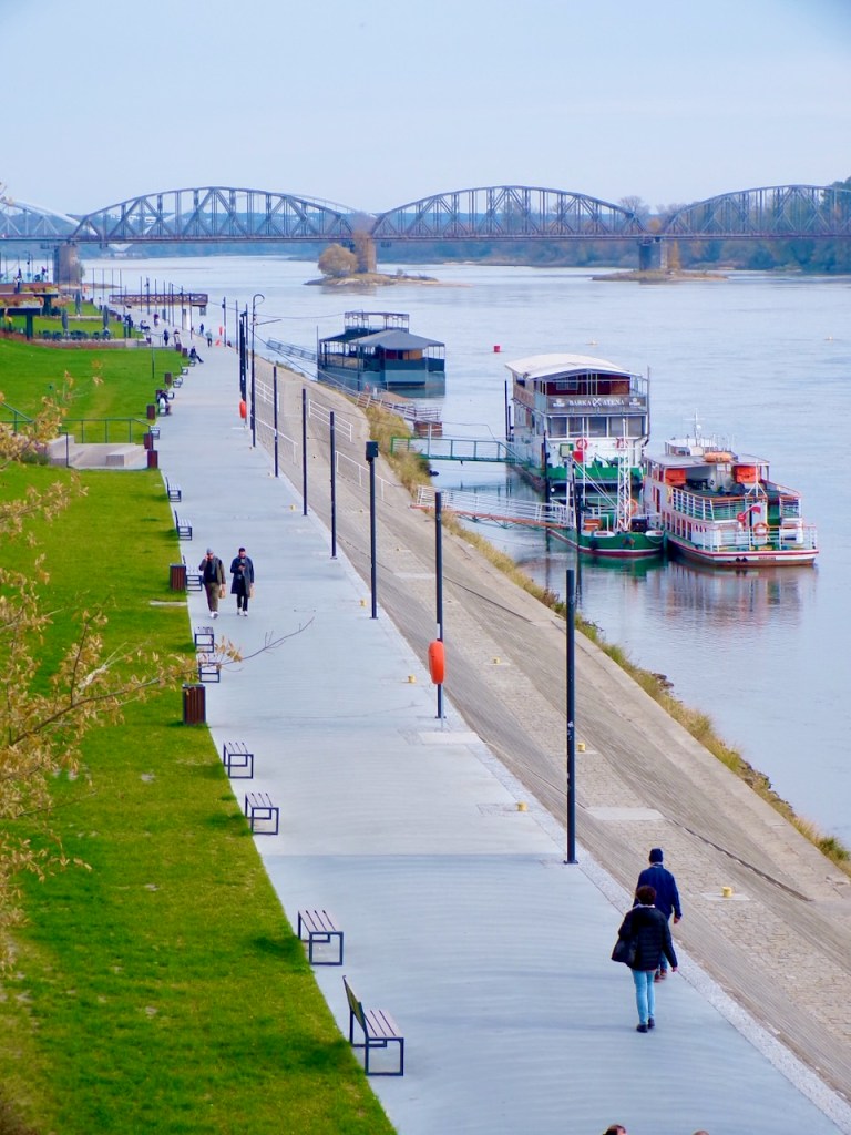 Veiksel-joen ranta oli tosi mukavaa käveltävää sekin. Oikein hyväkuntoinen kävely- ja pyöräilytie, komea silta, hyvät näkymät vastarannalle ja mukava rinne, jonka yläpuolella oli jälleen Torunin punatiilisiä näkymiä.