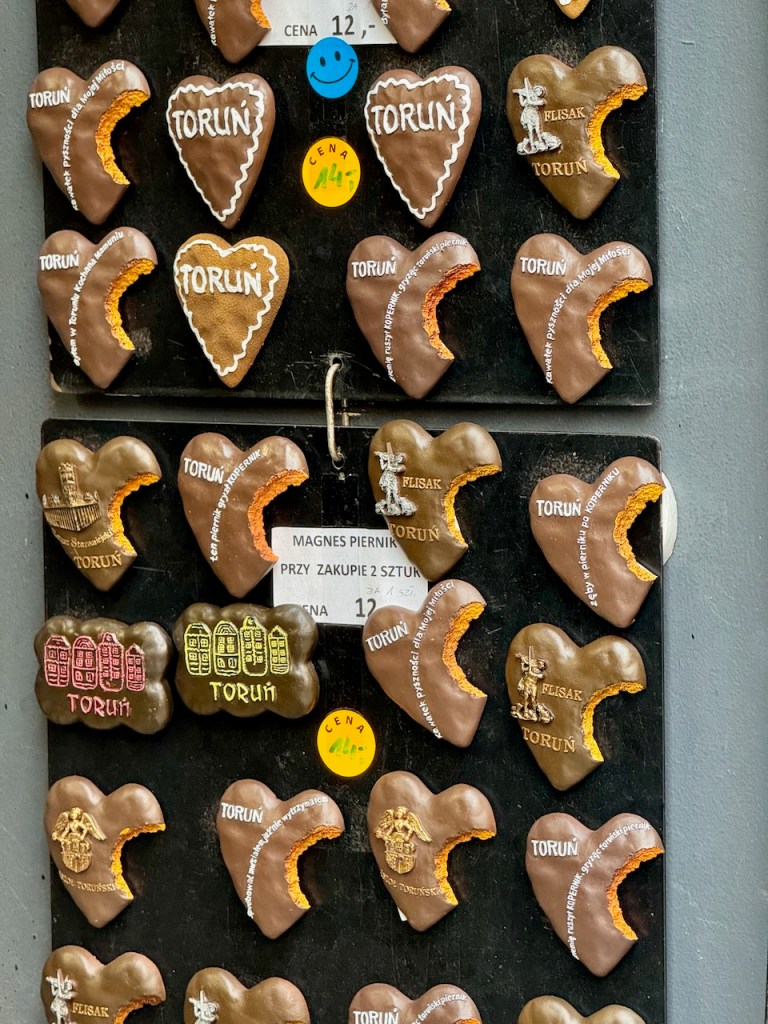Ainoa, mikä oli auki, oli turisti-info ja matkamuistomyymälä. Piparkakkukaupunki Torunin valikoima houkutteli. Seuraavana päivänä kävimme ostamassa täältä kaulimen.