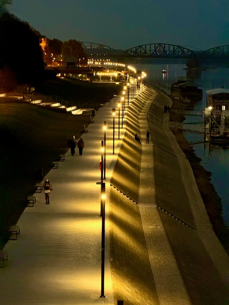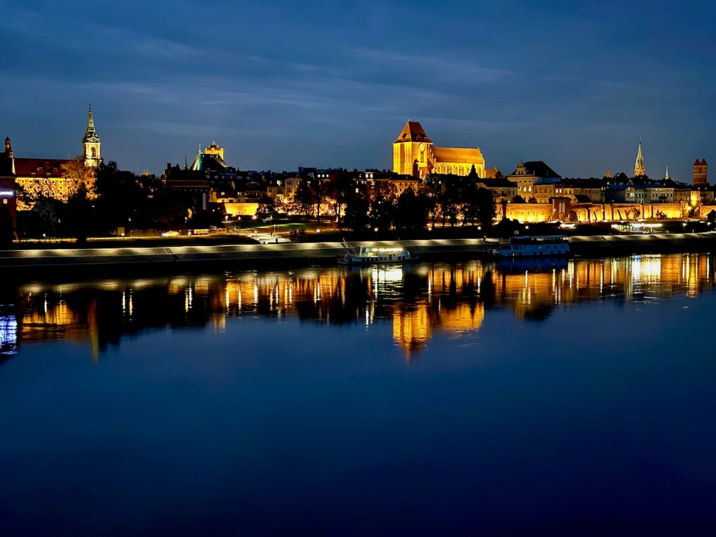 Sillalta oli komeat valaistut panoraamanäkymät Torunin kaupunkiin.