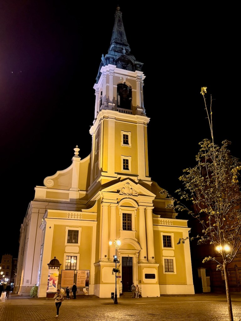 Toinen iso ja upea, eli Pyhän Jaakobin kirkko sijaitsee Nowomiejskin kauppatorilla.