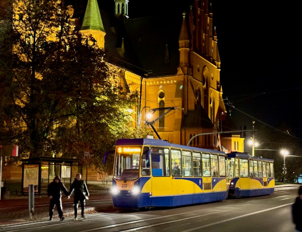 Lähellä meni raitiotie ja sain samalla dokumentin Torunin raitiovaunujen väristä.