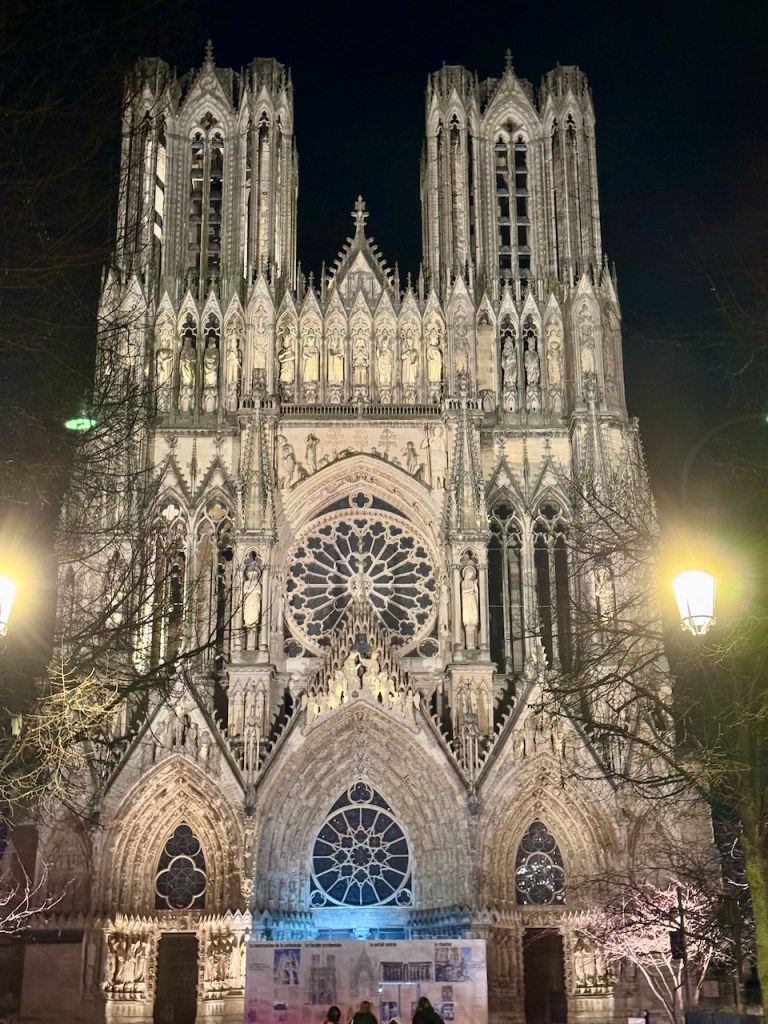 Tuo Notre Dame de Reimsin katedraali on ihan mielettömän upea! Jotenkin illan pimeys ja valaistus tekevät siitä vielä vaikuttavamman näköisen 🙂