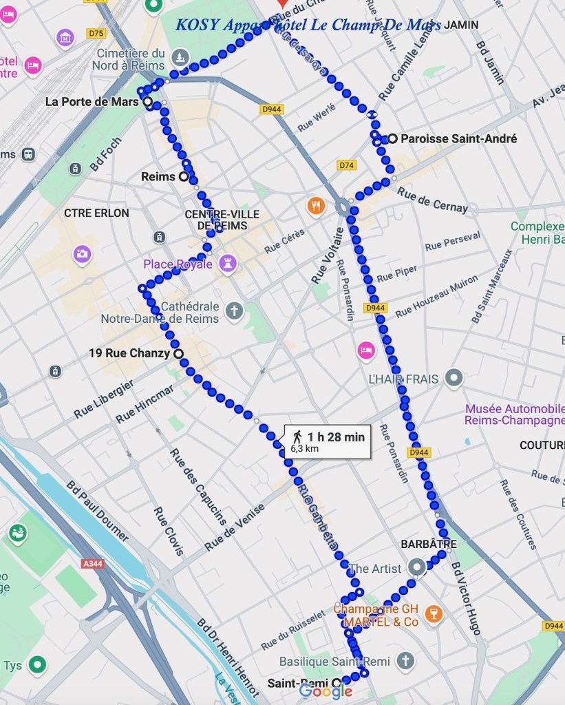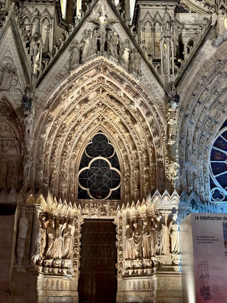 Emmepä juuri Reimsin historiasta mitään tienneet etukäteen. Reims on ollut Ranskan kuninkaiden kruunaamisen kaupunki. Suuri gooottilainen 1200-luvulla rakennettu Notre Dame de Reimsin katedraali oli kruunajaispaikka. Sekä se että Pyhän Remin luostari vaurioituivat pahasti ensimmäisessä maailmansodassa, mutta ne on restauroitu myöhemmin ja tänä päivänä ne ovat Unescon maailmanperimyslistan kohteita.