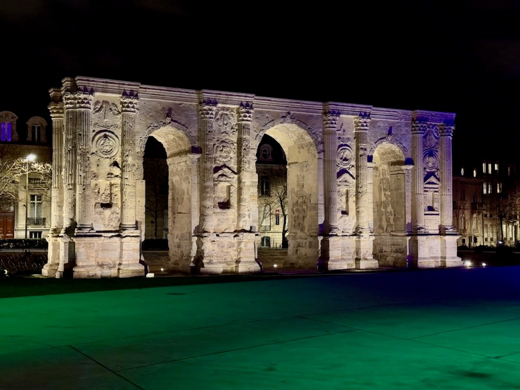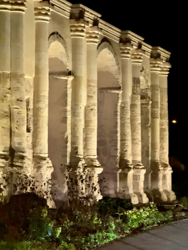 Porte de Mars on yksi Reimsin hieno nähtävyys. Sinne kävely oli helppoa ja siistiä. Tämä on siis varsinainen riemukaari. Valtavan värikkäät valot valaisivat aukiota ja sen viereisiä puiston kävelyreittejä.