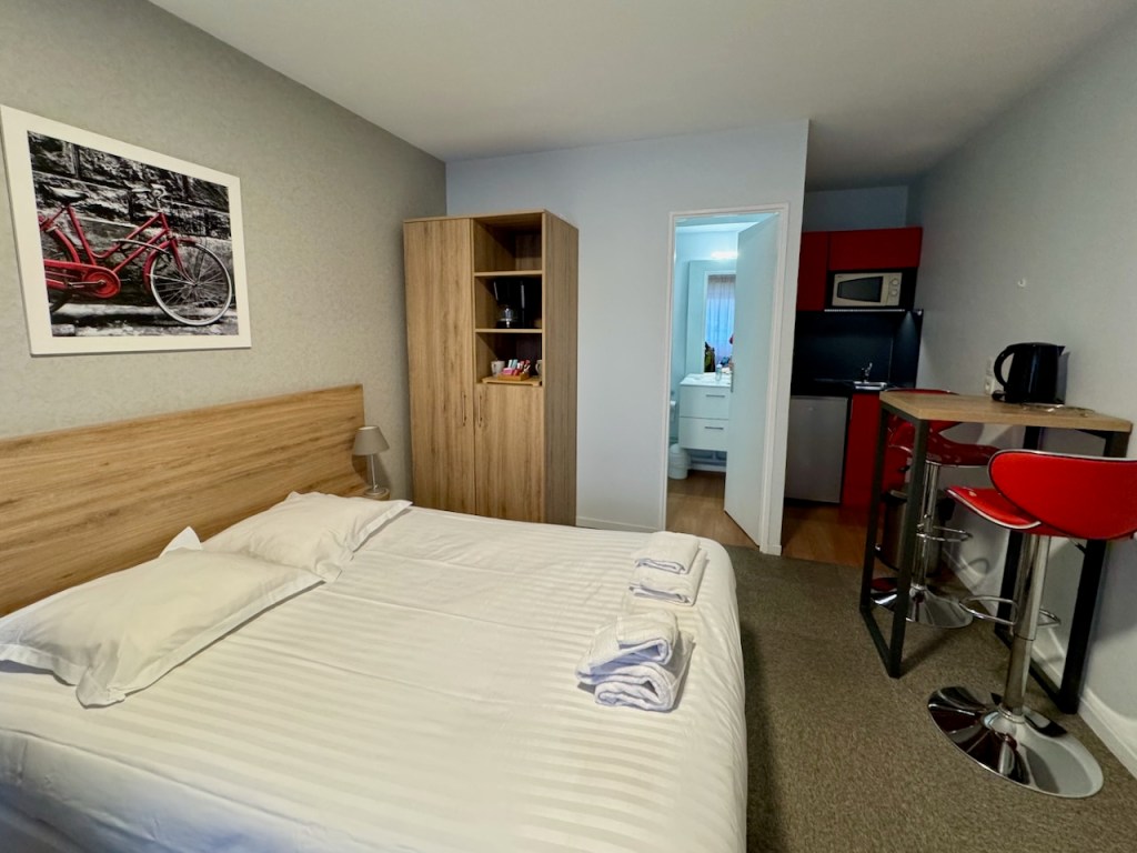 Hissillä pääsi ensimmäiseen kerrokseen ja terassikäytävää huoneeseen. Vähän pienihän se meidän matkatavaroita ajatellen oli, mutta oli siellä pieni keittotilakin aamiaisen tekemistä varten.