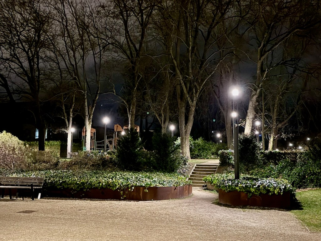 Kävelyä jatkettiin ja jotenkin matkan pituus yllätti, mutta lopulta oltiin täällä. Siis mitä, eikö täällä olekaan mitään mahtavaa? Tällainen kysymys oli huulilla heti tänne tultuamme. Muureja, hämärää, lasten leikkipaikka, mukava puisto oleskella.