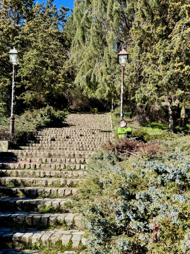 Sitten jatkoimme polkuja ja portaita pitkin rinteelle ja kohti linnan näköalatasanteita. Eipä siellä juuri muita seuralaisia näkynyt.