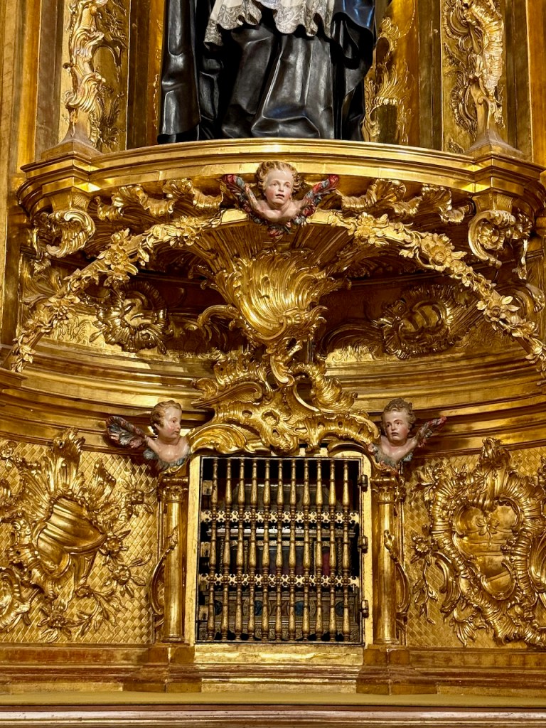 Sisätilat olivat tosi mahtavaa nähtävää kaikin tavoin. Oli isompia kappeleita, sivukappeleita, valtavan koristeellisia tauluja ja patsaita, urkuja ja käytäviä, kaikkea mahdollista.
