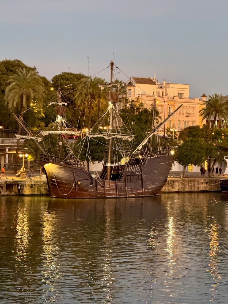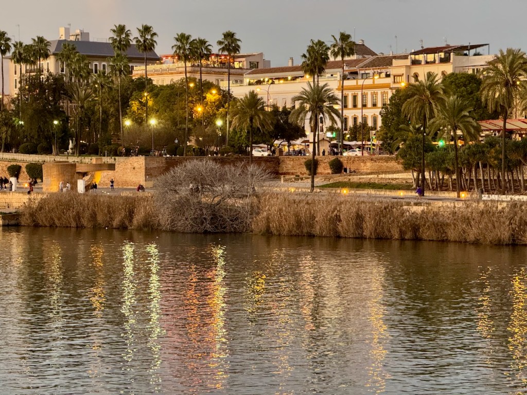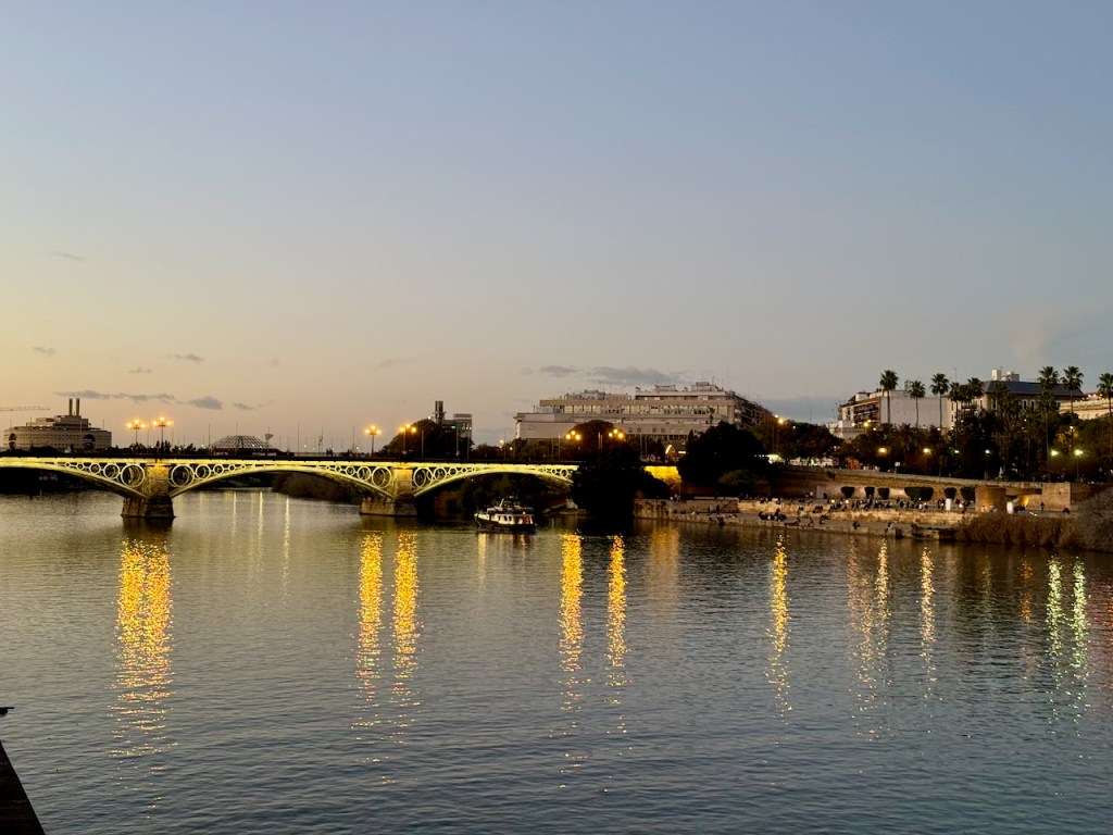 Suuntasimme heti tultuamme kävelylle iltamaisemiin ja erityisesti Plaza Españan iltavaloihin. Jo kävely jokirannassa ja joen yli oli tunnelmallista iltaa ennen auringonlaskua. Jo näiden kuvien perusteella suosittelen kävelyä Trianasta keskustan puolelle.