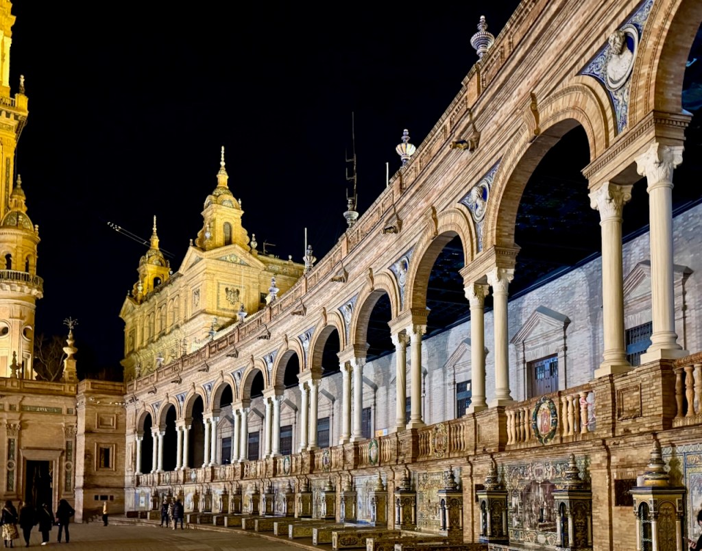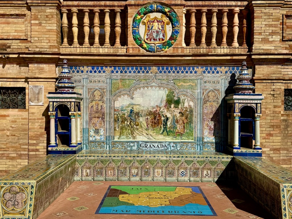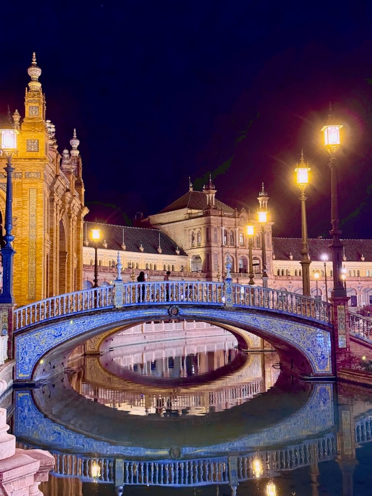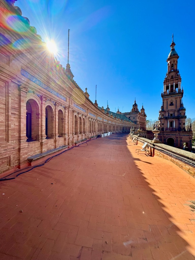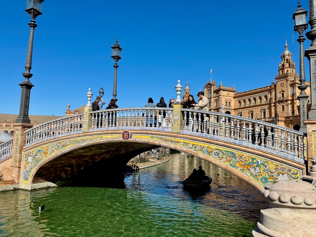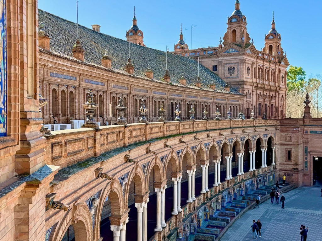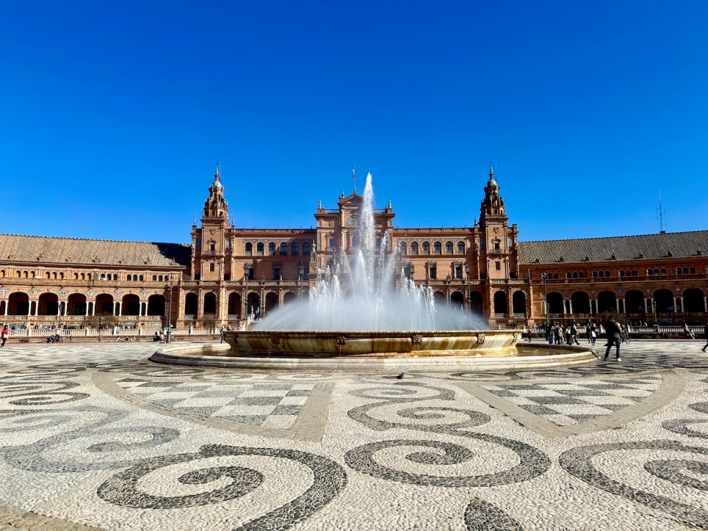 Plaza España on ehdottomasti Sevillassa yksi sen ykköskohteista. Se on upea puoliympyrän muotoinen aukio. Kanavat ylittävät sillat, niiden koristeelliset aidat ja Andalusian maakuntia kuvaavat mosaiikit ovat ihan parasta nähtävää.