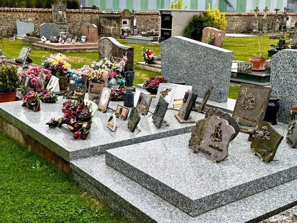 Tällaista ei kävelyllä löytynyt, ehkä vähän liikaakin kylän ulkopuolella, mutta tien varressa oli yllättävän hieno hautausmaa, jossa oli tosi tyypillisiä ranskalaisia piirteitä, esimerkiksi hautakivien päällä kuvia, esineitä ja muistolauseita.