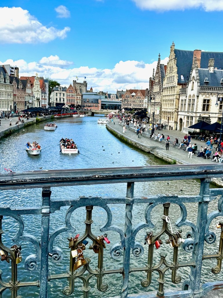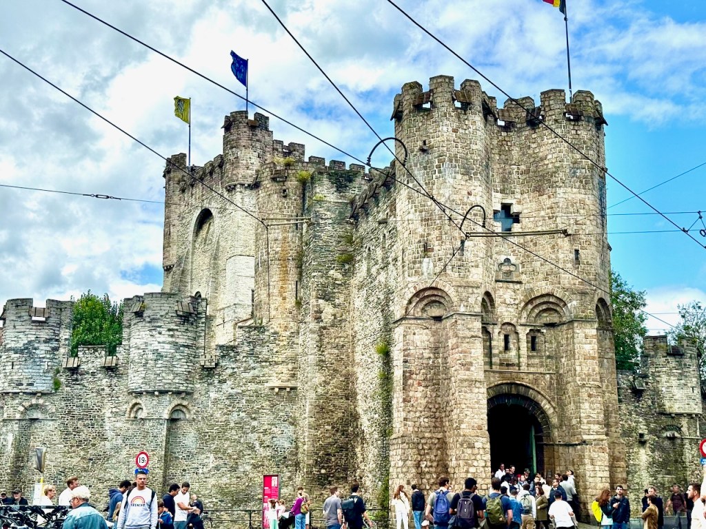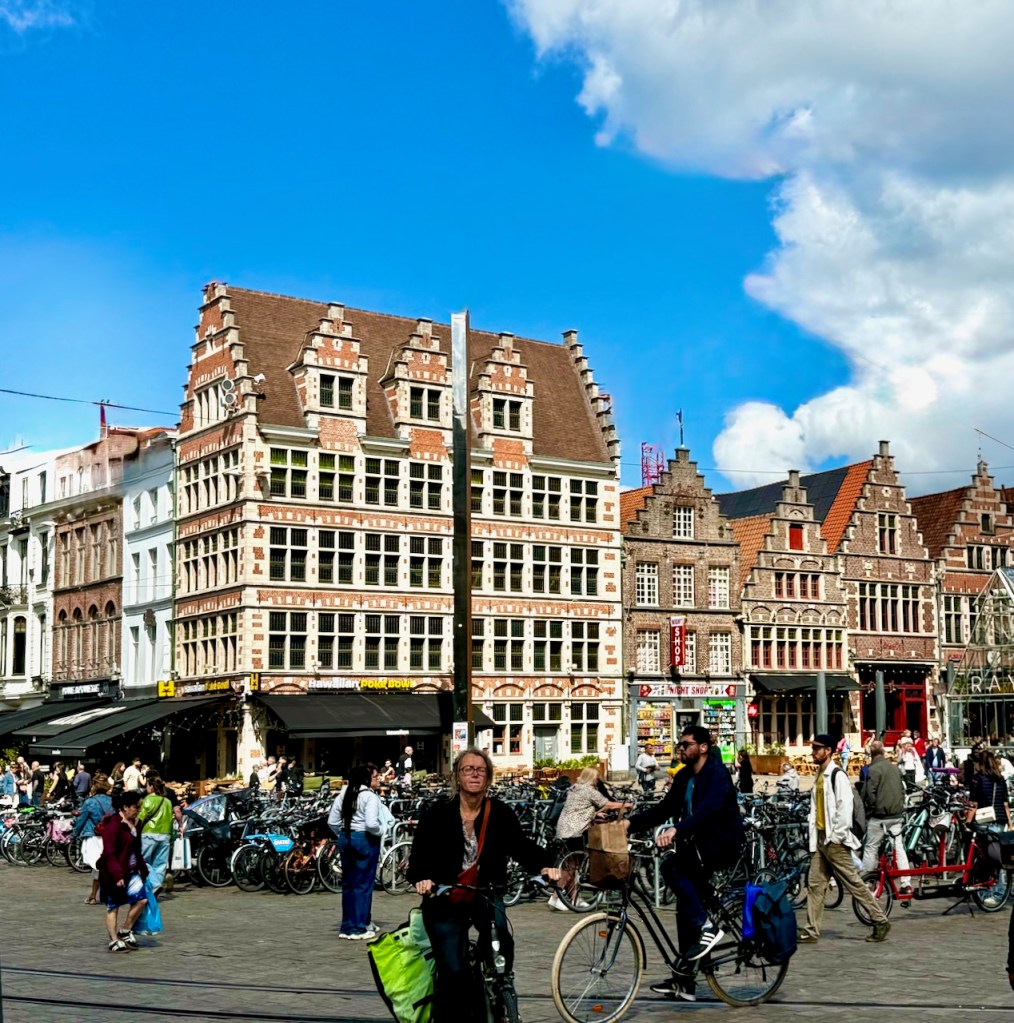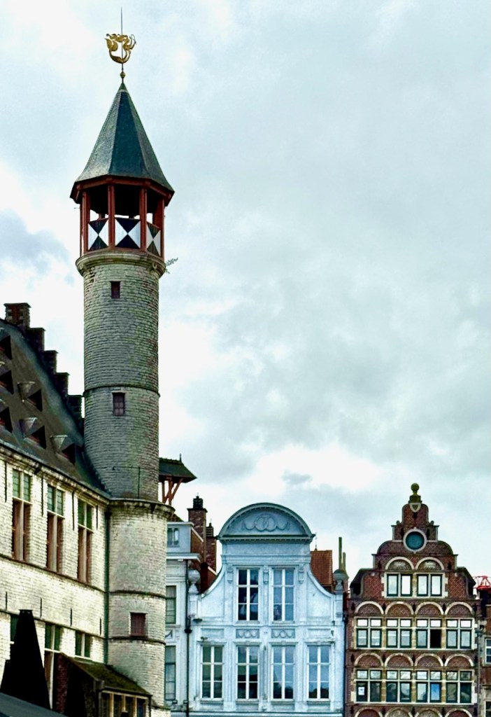 on suosittu kaupunki Belgiassa. Samaa mieltä! Huikeita näkymiä. Gravensteenin linna, Gentin tuomiokirkko, Korenmarkt & historiallinen keskusta, Graslei ja Korenlei, ja näköalapaikkana Gentin kellotorni, nämä ehdimme päivässä kiertää ja samalla nähdä hienoja katu- ja jokinäkymiä sekä erikoisliikkeiden näyteikkunoita. Vähäpäästöisen alueen ajoneuvorajoitteet saivat taas etsimään parkkipaikan sen ulkopuolelta, mutta ei ongelma.
