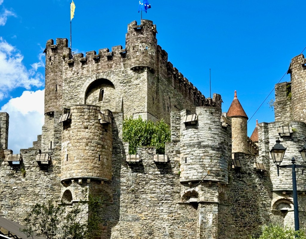 Leie-joen toisella puolella on yksi Gentin hienoimmista päänähtävyyksistä eli Gravensteenin linna.