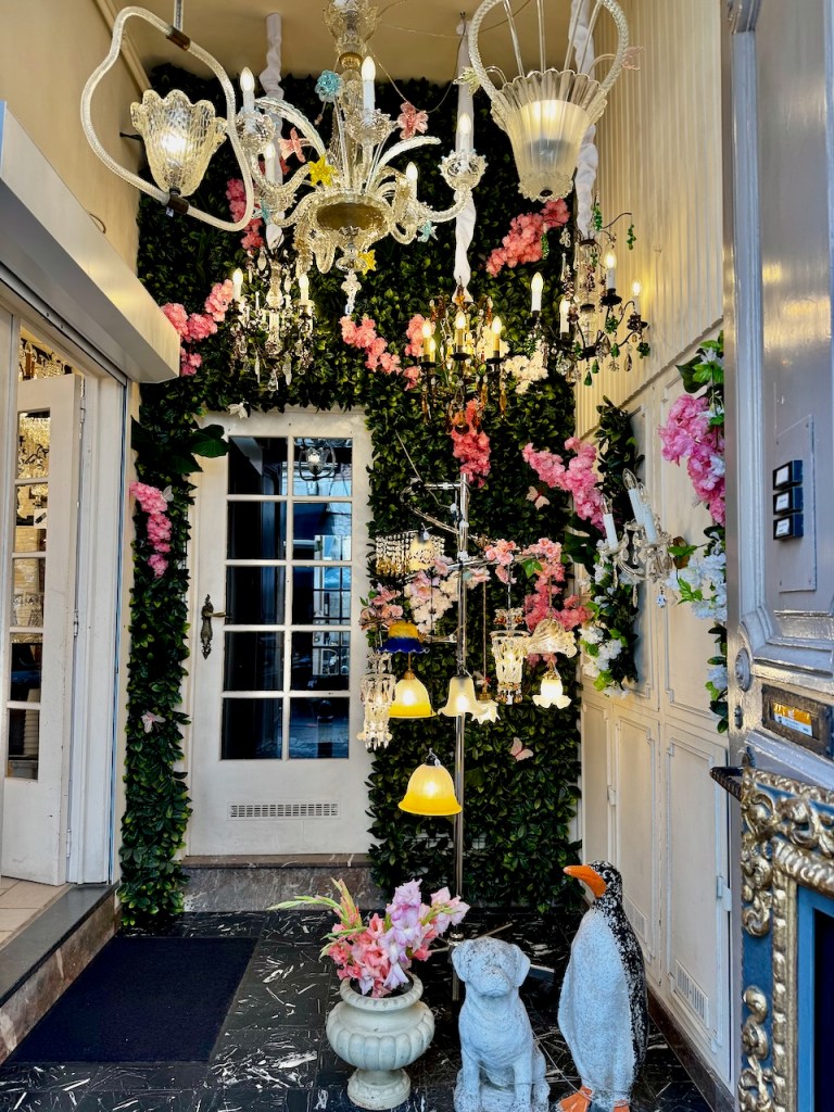 Lähikaduilla oli kivan näköisiä näyteikkunoita. Pitsejä, vaatteita, sisustustuotteita, kattokruunuja ym.