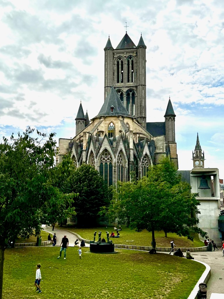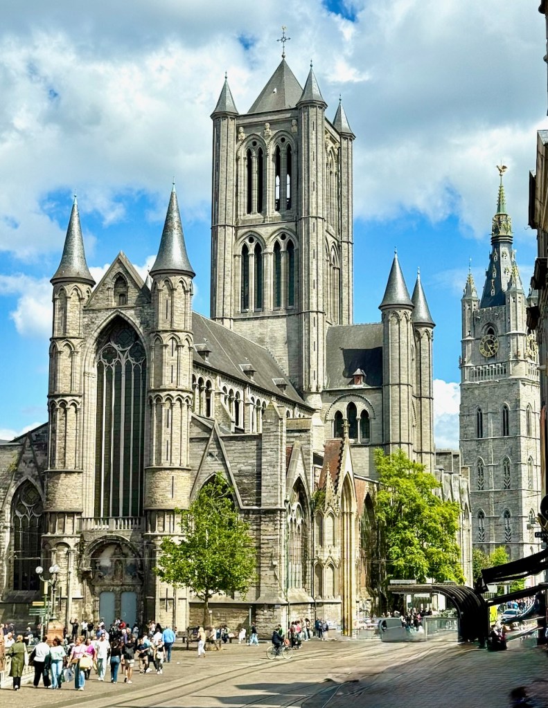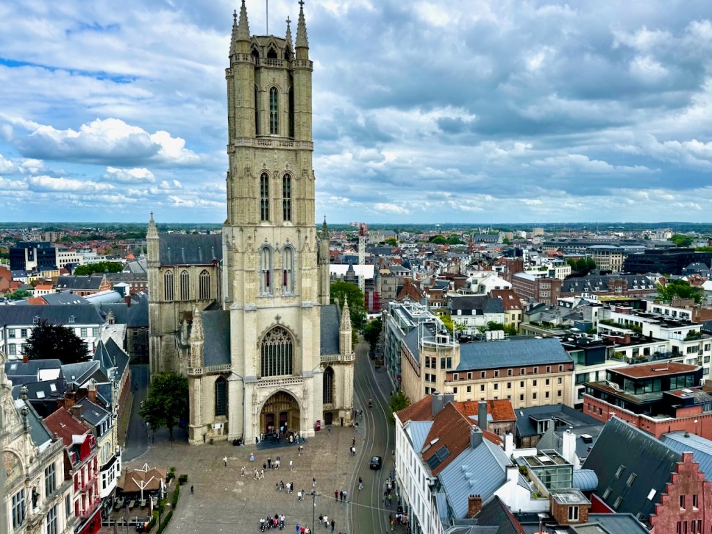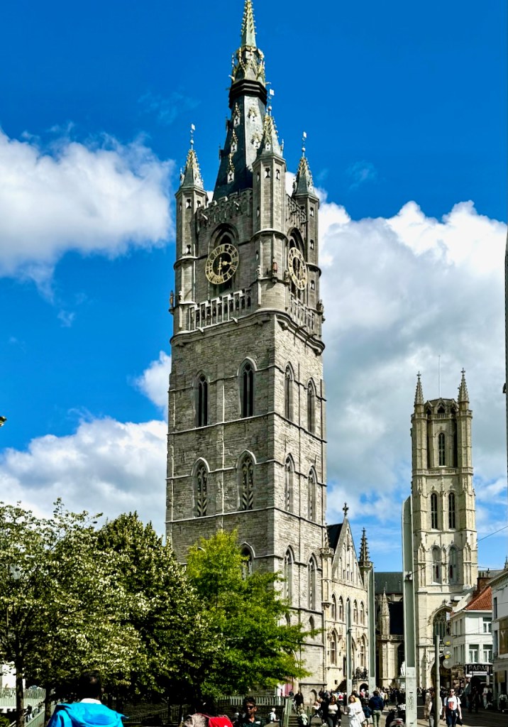 Tämän torin vierellä on kaksi hienoa kirkkoa ja kaupungin paras näköalatorni, eli Gentin Tuomiokirkko (Pyhän Bavon katedraali), Pyhän Nikolain kirkko ja Gentin Kellotorni. Kaikki käytiin.