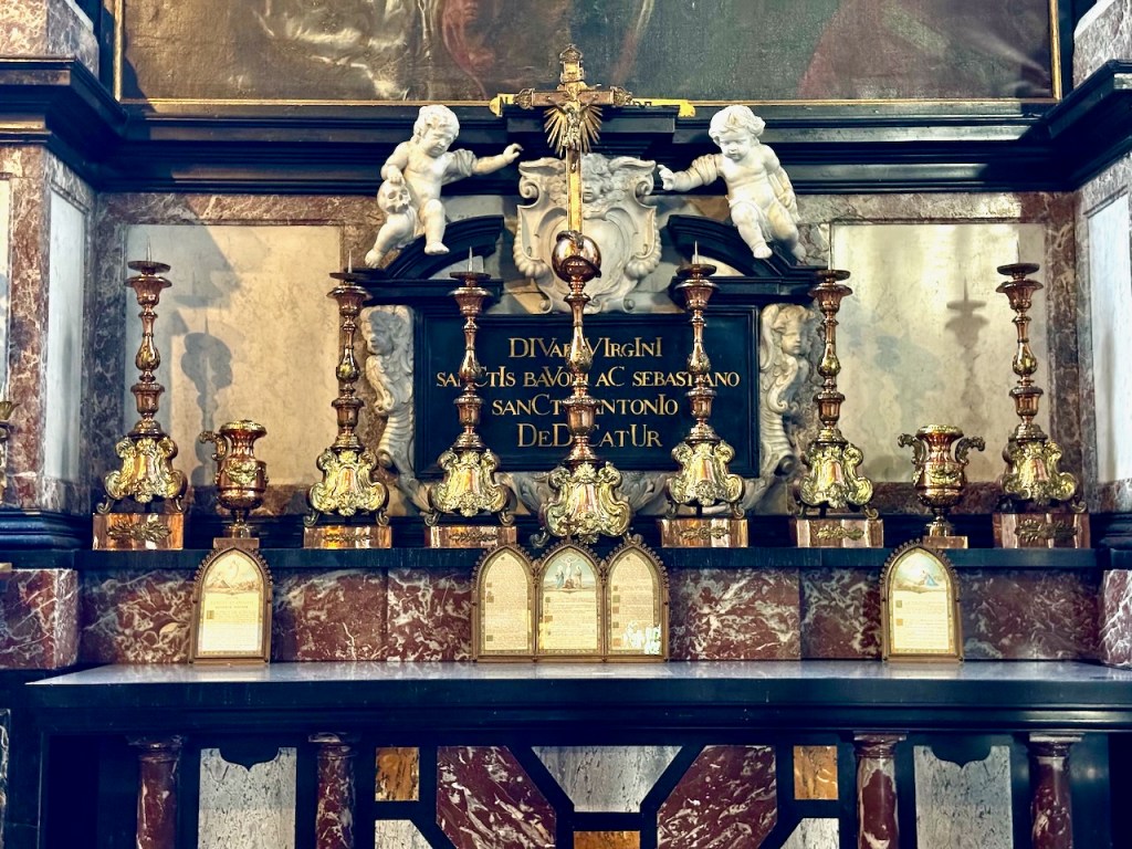 Rubensin alttaritaulu, Pyhän Bavon sisääntulo luostariin (1623) on toinen hieno taideteos.