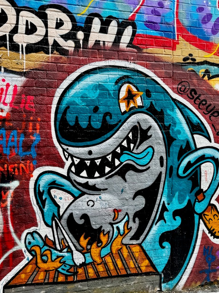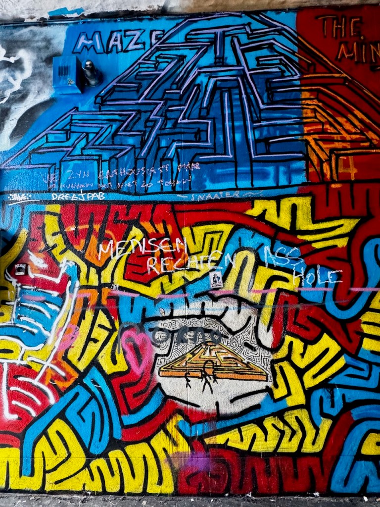 Sitten oli jäljellä vielä yksi elämys. Graffitikatu. Aika uskomaton paikka. Monen sadan metrin katu täynnä graffiteja.