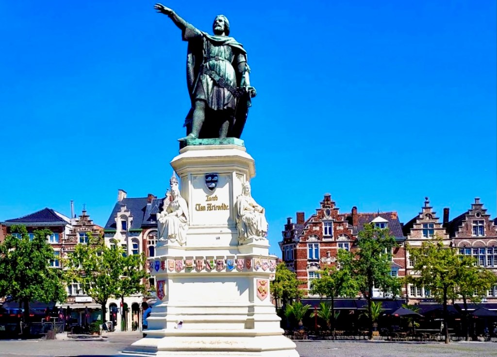 Kuvassa on flaamilaisen valtiomiehen ja kansanjohtajan Jacob van Artevelden (n. 1290–1345) patsas. Hänet tunnetaan roolistaan Gentin johtajana satavuotisessa sodassa.  Pystytetty vuonna 1863.