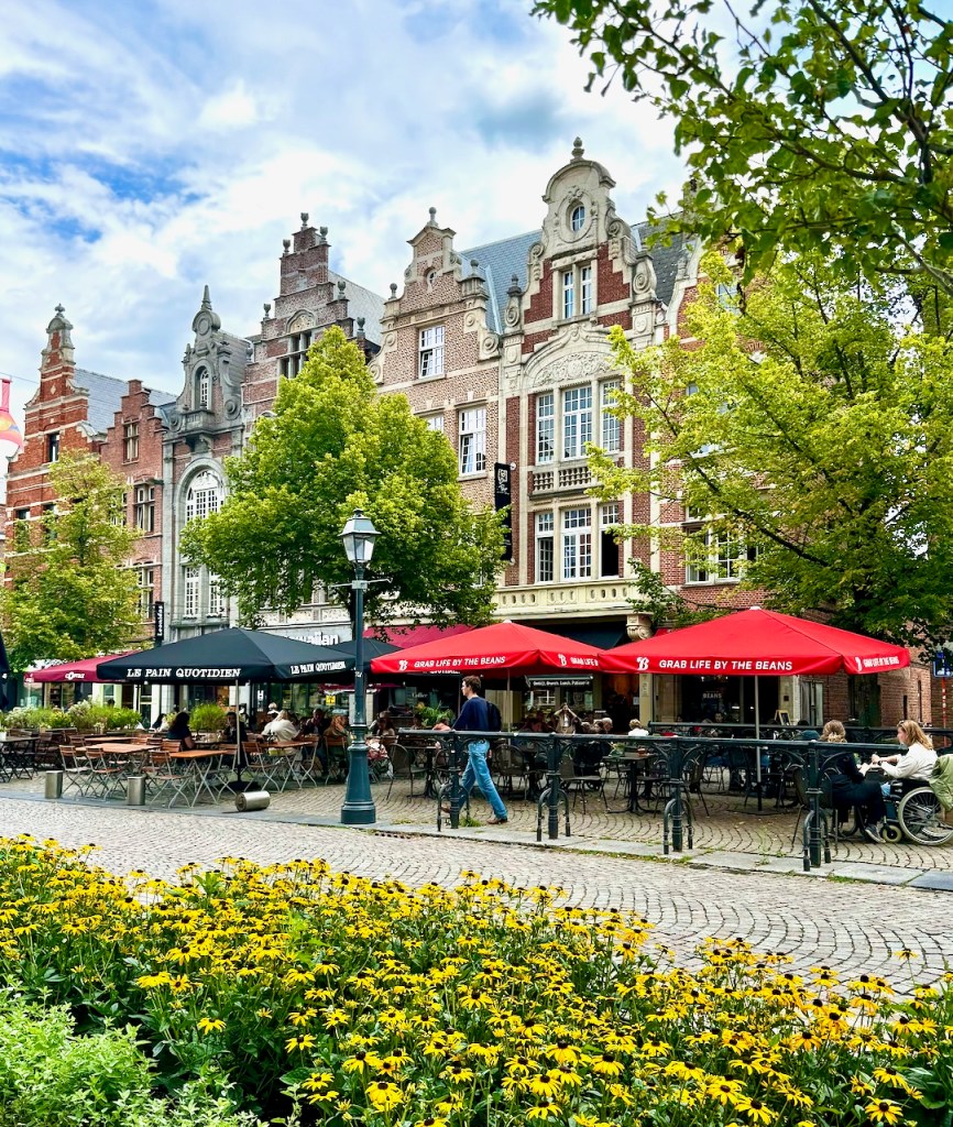 Toinen suosittu ja tunnettu kohde Belgiassa on Gent. Sen maisemia ei todellakaan kannata jättää väliin. Jälleen päästörajoitusalue keskustassa, eli kävelyä. Grote Markt, Gravensteenin linna, jokimaisemat, upeat kirkot ja näköalatasanteelle kiipeäminen, kaikki tapahtui.