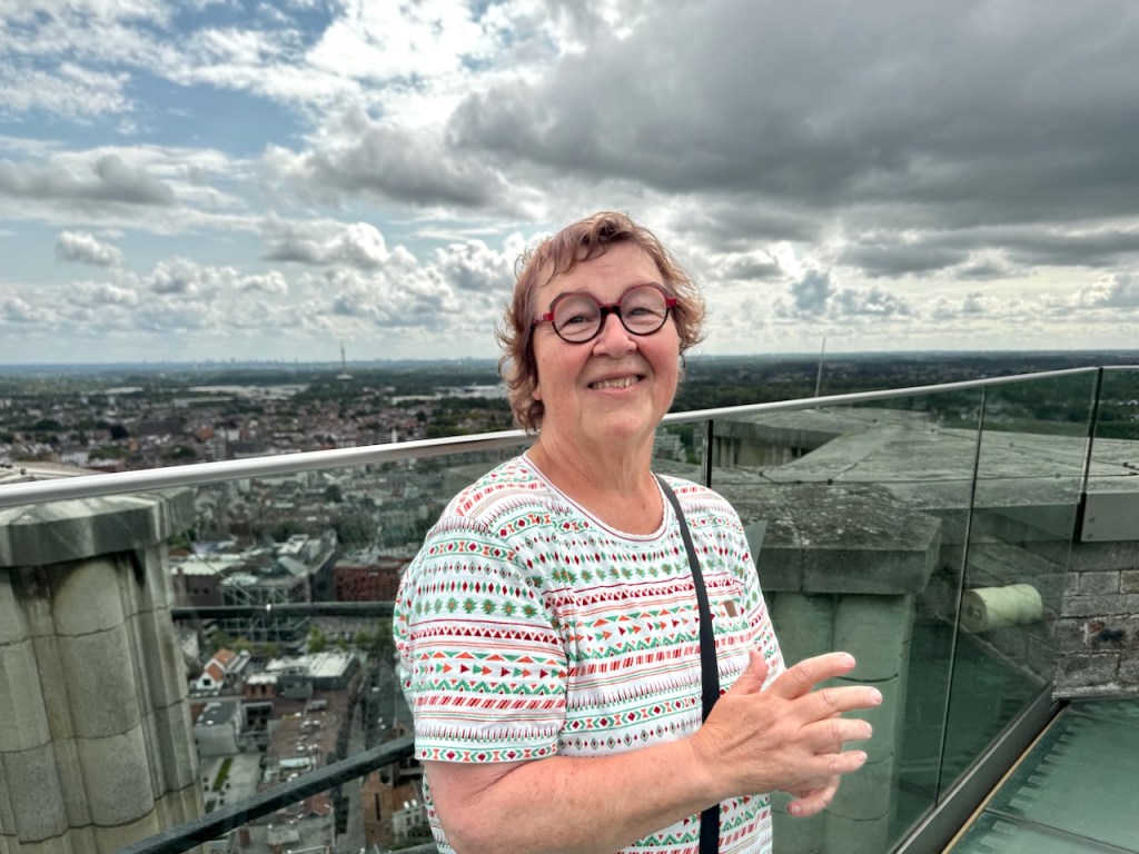 Yhdessä kirkossa on valtavan korkea torni, jonne taas oli lupa kiivetä. Ylhäällä kohtasin kaksi nuorukaista, jotka kehuivat kiipeilevää suomalaisvanhusta, ottivat minusta kuvan ja juttelivat pitkään matkailusta, kyselivät Suomesta ja vielä tarkkailivat, että pääsin alaskin. Tällaiset kokemukset ovat hauskoja kiireettömässä matkailussa.