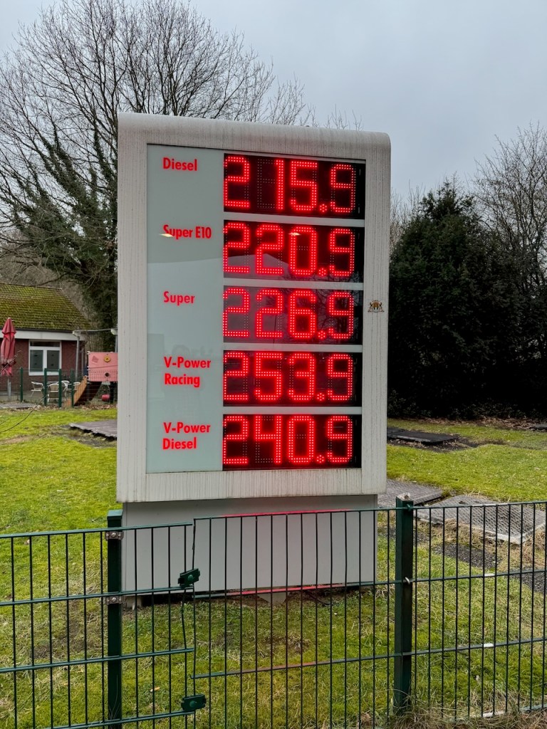 Yhden pahan mokan teimme matkalla. Käännyimme huoltoasemalle, kun piti tankata, emmekä huomanneet katsoa hintoja ensin. Ohhoh! Eipä ole Saksassa ihan tällaista aikaisemmin nähty, vaikka moottoriteiden varrella hinnat ovatkin kalliimpia kuin pienemmillä teillä.