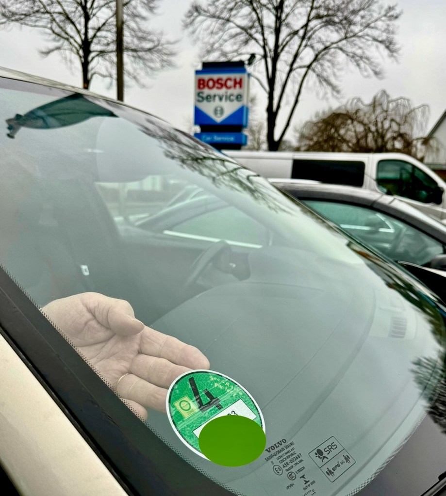 Tuo Saksan ympäristötarra on aiheuttanut kyllä pientä haittaa useampaan kertaan. Auto ei ole vaihtunut, mutta tuulilasi on. Ja sinnehän se tarra sitten katoaa. Katsastuskonttoreilla, mistä sen tarran saa, ei onneksi tarvitse osata saksaa sanaakaan. Ne kyllä tietää, mitä tulee hakemaan 😀