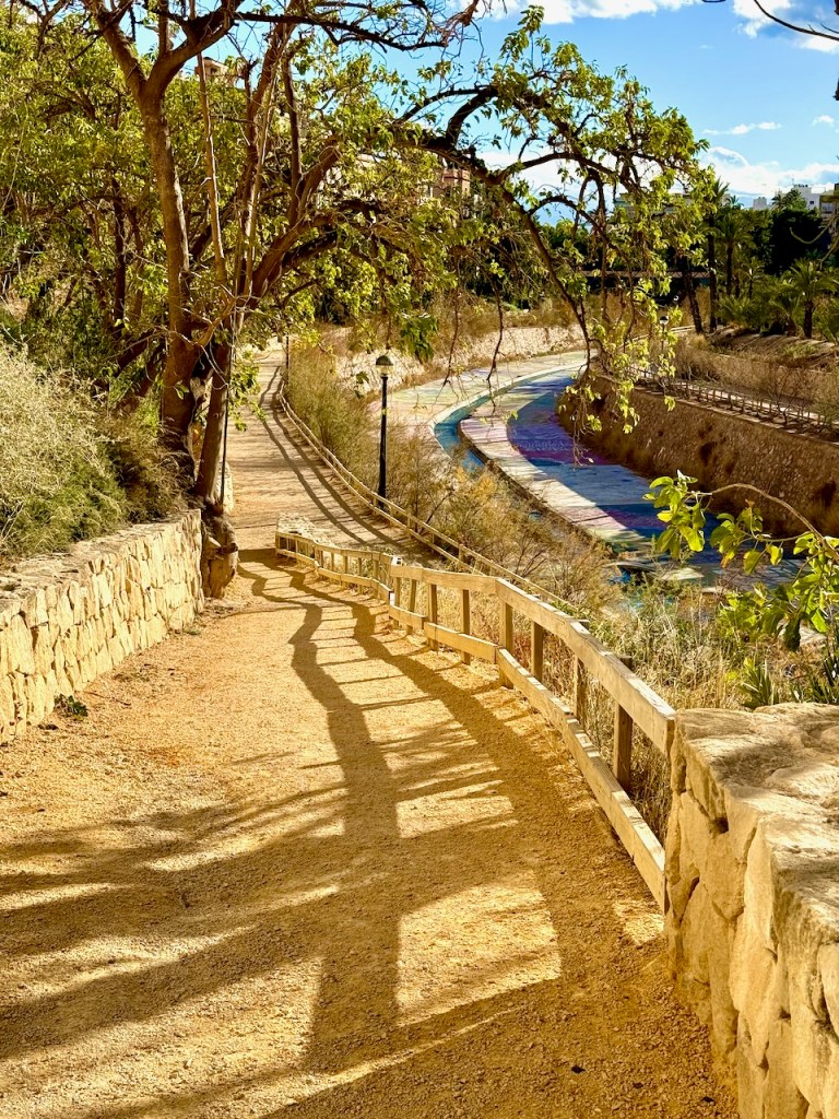 Hotelli ei ollut Elchen keskustassa, joten ajoimme seuraavana päivänä tekemään kävelylenkin Elchessä. Kaunis kaupunki. Aivan erityisesti tunnettu palmumetsistään ja puistoistaan. Sen halki kulkeva joki Rio Vinalopó oli aika yllättävän näköinen ollakseen enää joki.