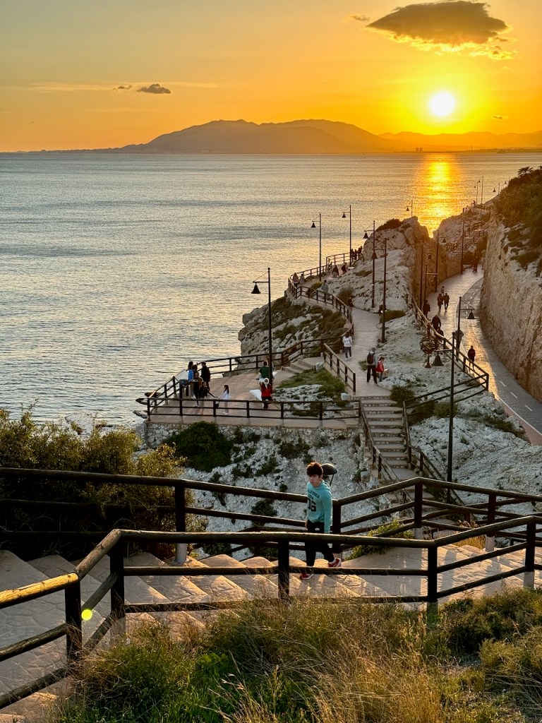 Illaksi olimme Rincon de la Victoriassa niin aikaisin, että ehdimme iltakävelylle auringonlaskuun La Cala del Moralin rantakallioille.