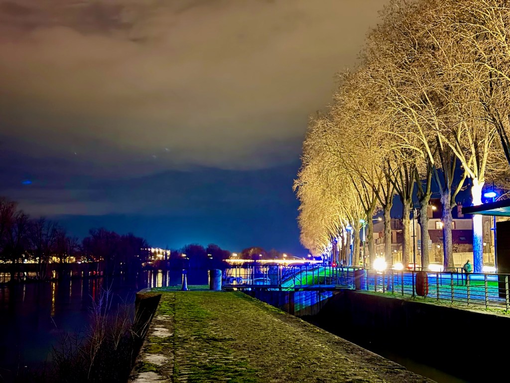 No, tästäkin selvittiin. Ja iltakävely oli oikein mukavaa aloittaa hienosti valaistusta Loiren rannasta.