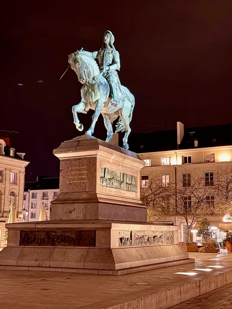 Orléans tunnetaan ennen kaikkea Jeanne d’Arcista, joka vapautti kaupungin englantilaisilta vuonna 1429. Hänen tarinansa näkyy kaupungilla monin tavoin. On patsaita, museoita ja tapahtumia. Rue Royale kadun päässä vasemmalla on Maison de Jeanne d’Arc (Jeanne d’Arc’n talo), jossa olisi päiväsaikaan löytynyt myös museo ja erilaisia multimediaesityksiä. Talon edessä oleva aukio on De Gaullen aukio. Siis tätäkin historiaa Orléansista.