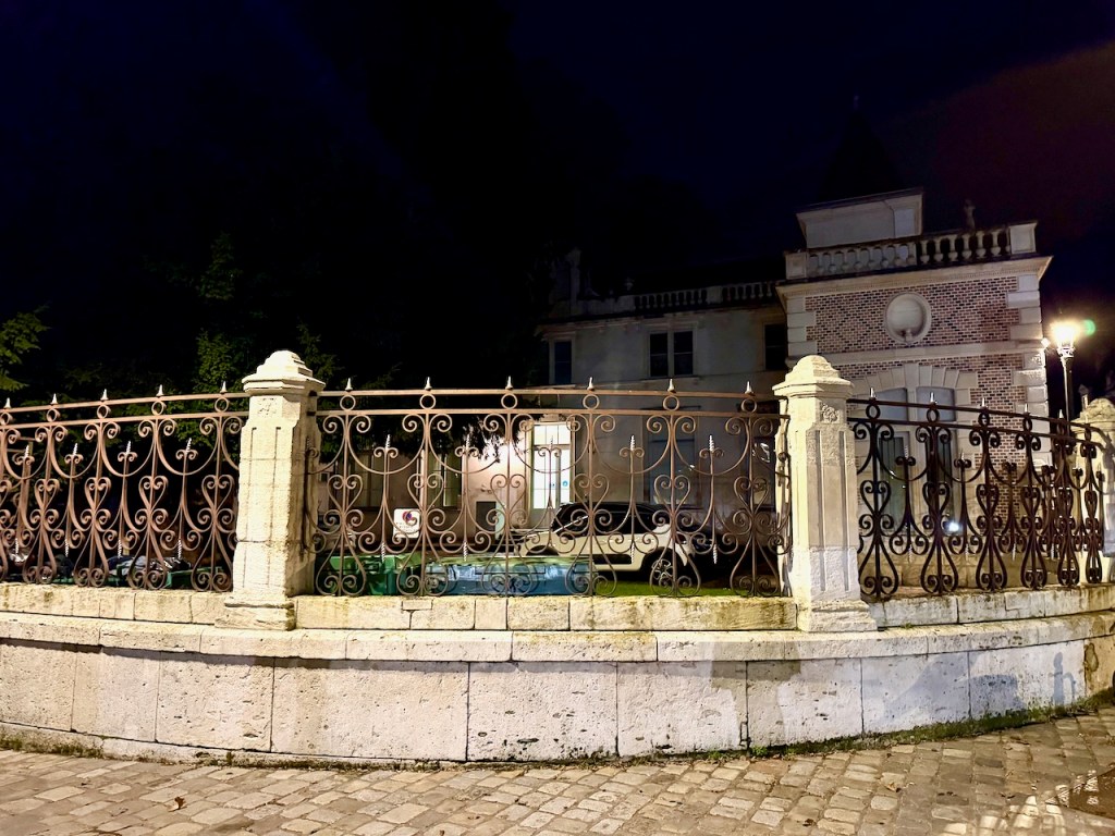 Aukion lähellä oli tällainenkin suihkulähdepatsas. Veistokseen oli kaiverrettu nimi Belmondo. Google lens kertoi, että veistos oli ranskalaisen näyttelijän Jean-Paul Belmondon isän, Paul Belmondon, käsialaa. Hänet tunnettiin yhtenä 1900-luvun merkittävimmistä ranskalaisista kuvanveistäjistä.