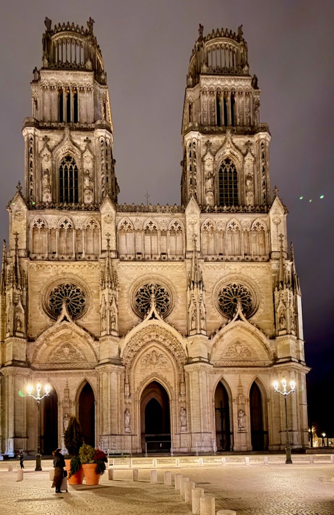 Orléans jäi mieleen mukavana pysähdyspaikkana. Ja niin kuin usein ennenkin automatkoilla, mieleen jäi ajatus, että täällä olisi joskus kiva kävellä päivälläkin, pääsisi sisälle Katedraaliin ja museoihin, ehkäpä joihinkin kauppoihinkin, vaikka se nyt yleensä meille ei ole tärkeää. Ja jos joskus olisin täällä kesäisempänä päivänä, Parc Floral de la Source eli laaja, kaunis puutarha- ja arboretumalue Orléansin eteläpuolella kutsuisi meitä kävelylle.
