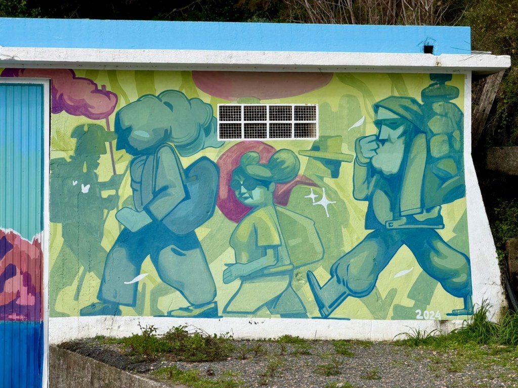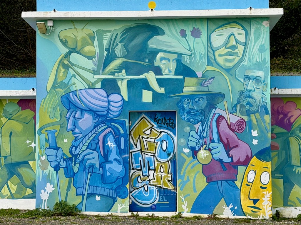 Niemen kärkeen ajaessa myös muraalit kertovat pyhiinvaelluksesta.