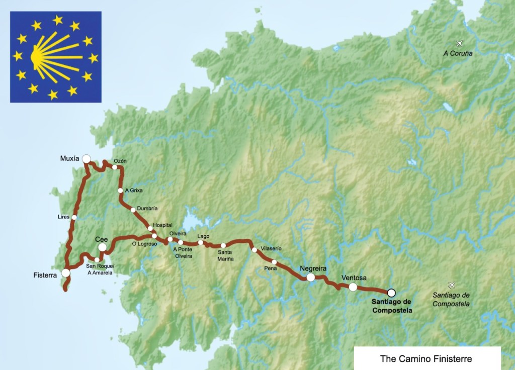 Fisterra oli mukava päiväretkikohde. Oli mielenkiintoista nähdä, miten paljon tännekin ilmeisesti suuntautuu pyhiinvaellusta. Reitillekin löysin kartan.