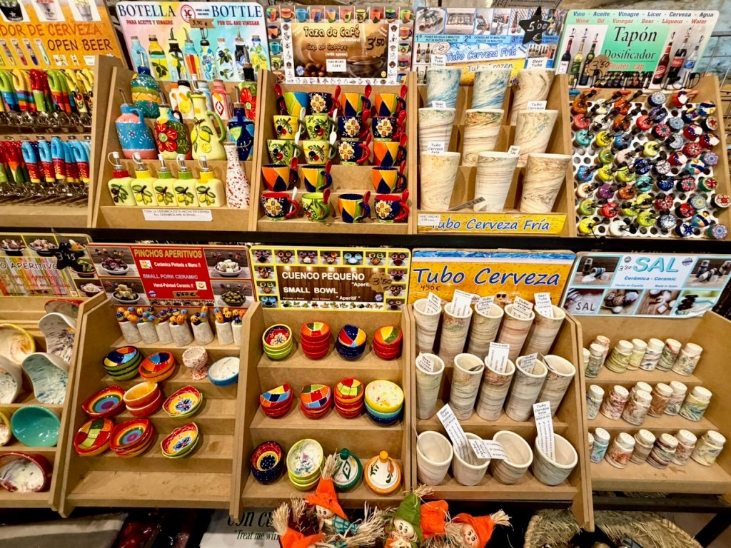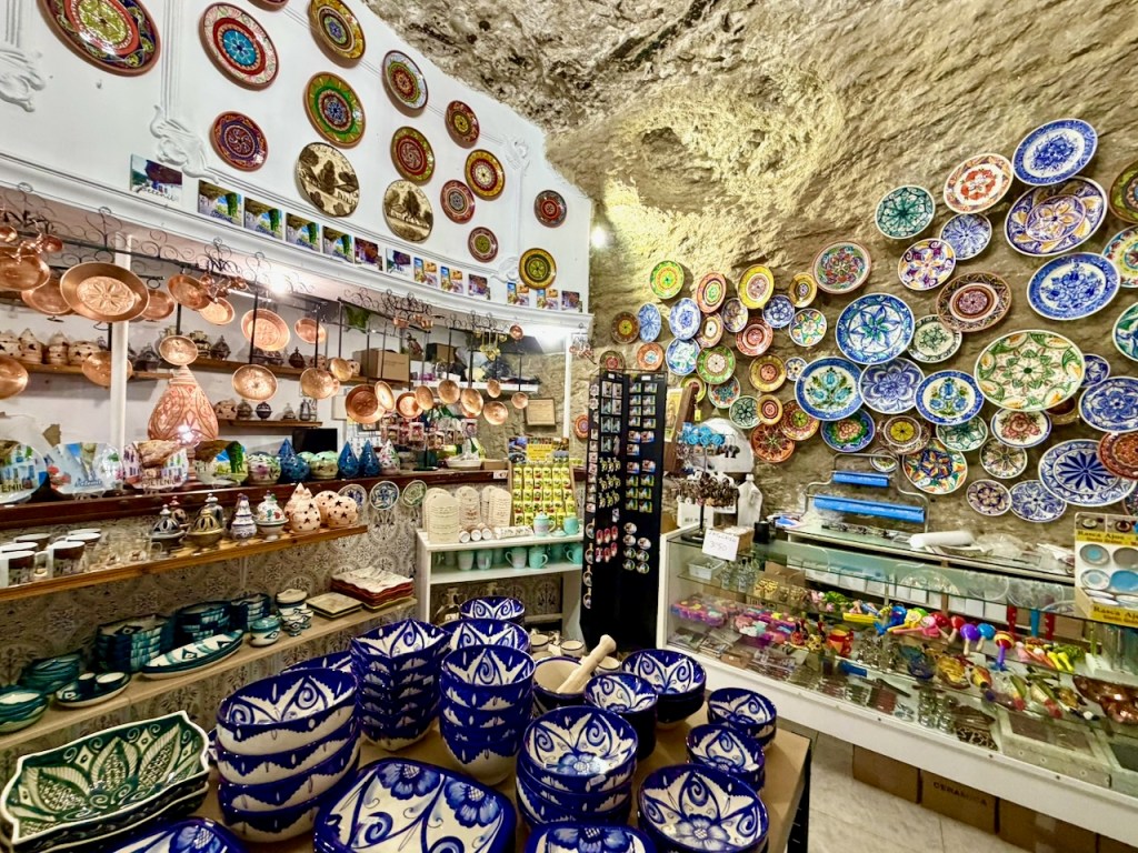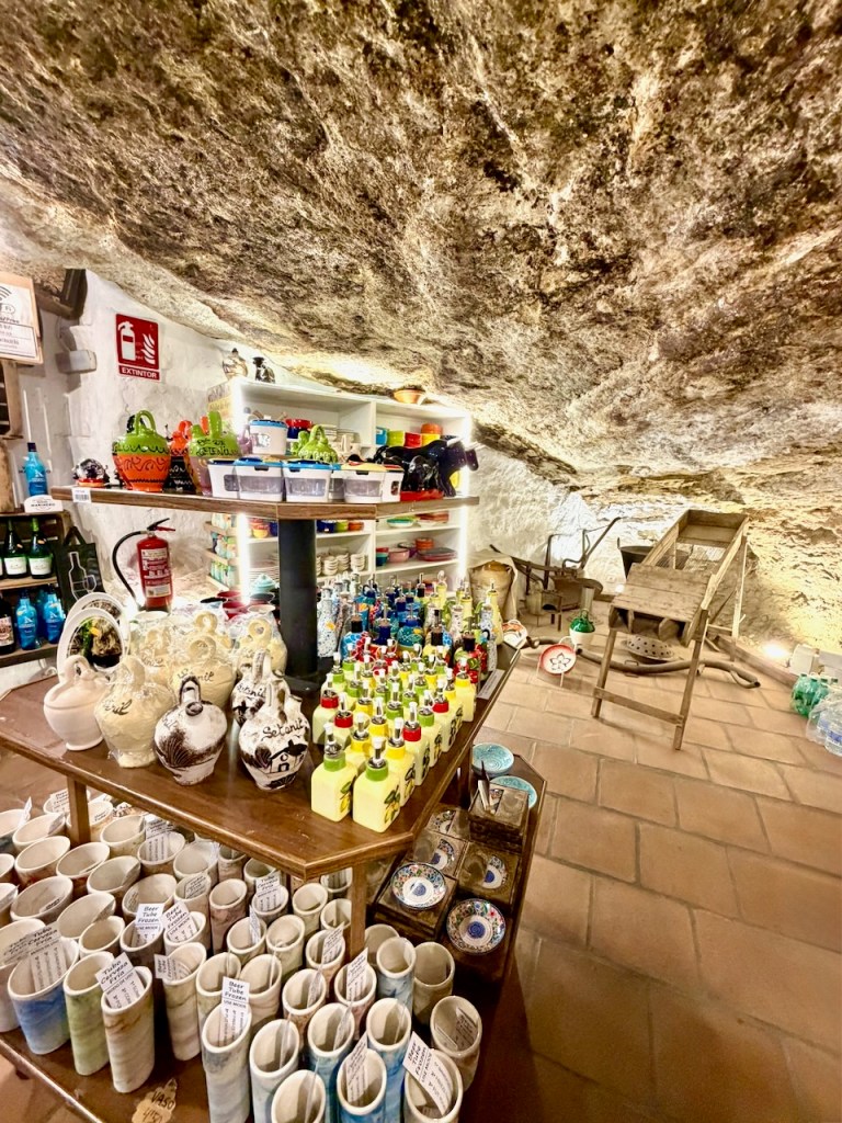 Löysimme heti Cueva Altan myymälän luolasta. Taidetta, mausteita, juomia ja vähän muutakin syötävää.