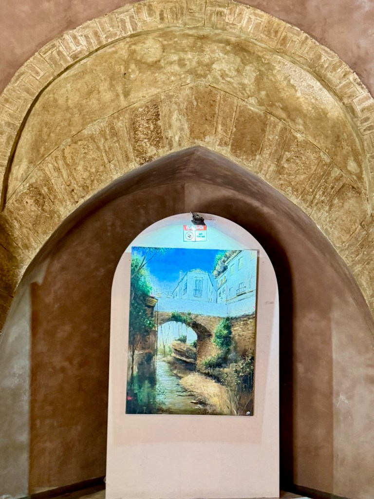 Aikanaan tämä arabilinnoitus joutui antautumaan kristittyjen joukoille yhtenä lähes viimeisimmistä muslimien hallussa olleista linnoituksista. Muslimien valtakausi päättyi lopullisesti yli 500 vuotta sitten, joten ihan viime aikojen historiaa emme täällä katselleet, kun vierekkäin olevaa kirkon tornia ja arabilinnoitusta katselimme.  Tornissa on kylän historiasta kertova näyttely, joka kuitenkaan tänään ei ollut auki meille sopivaan aikaan. Sen näköalatasanteelta voi myös katsella kylää.