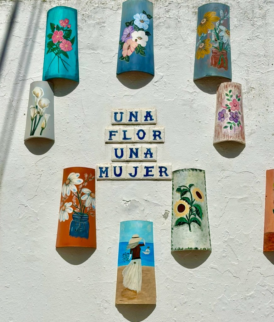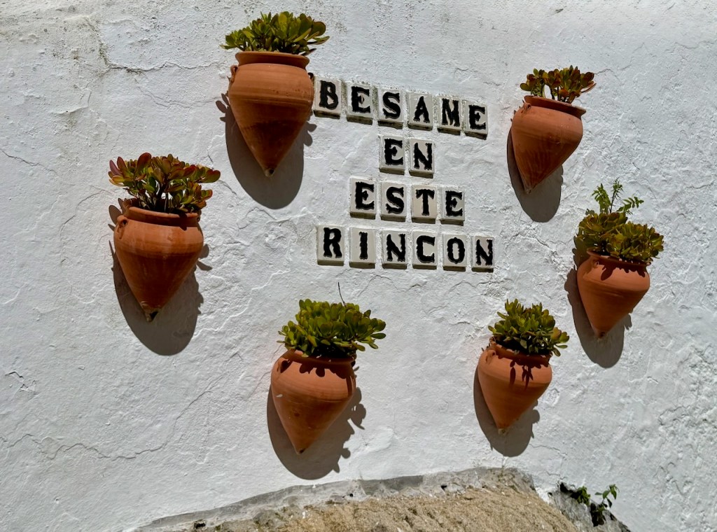 Ja siitä alas Calle Herreria ja sen alapäässä sekä Besame (eli suutele minua) kulma ja naisille omistettu kukkaseinämä.