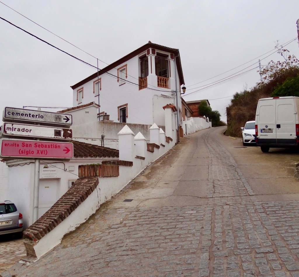 Sekoilu kuitenkin vain paransi vierailuamme. Pysähdyimme kadun varrelle parkkiin, katselimme alas kylään ja näimme, että vieressä olevan kadun kyltti ohjasi San Sebastianin Ermitaan, hautausmaalle ja Miradorille. Sinnepä siis. Jyrkkään ylämäkeen. Navigaattorimme hermostui: ”Tee U-käännös heti, kun mahdollista!”