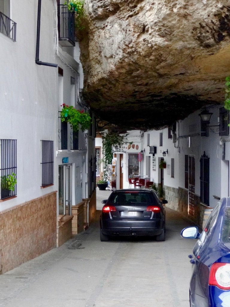 Kun näimme dramaattiset kuvat kallion sisällä olevista taloista, ravintoloista ja kaduista, totesimme saman tien, että Setenil de Las Bodegas pitää nähdä omin silmin. Ensimmäisen kerran jälkeen jäi halu vierailla uudelleen ja sen teimme. Kylä kuuluu Andalusian kauneimpien valkoisten kylien reittiin ja sinne on Fuengirolan seuduilta noin sata kilometriä. Paikkaan voi ajaa joko Cartaman ja Ardalesin kautta tai Rondan kautta.