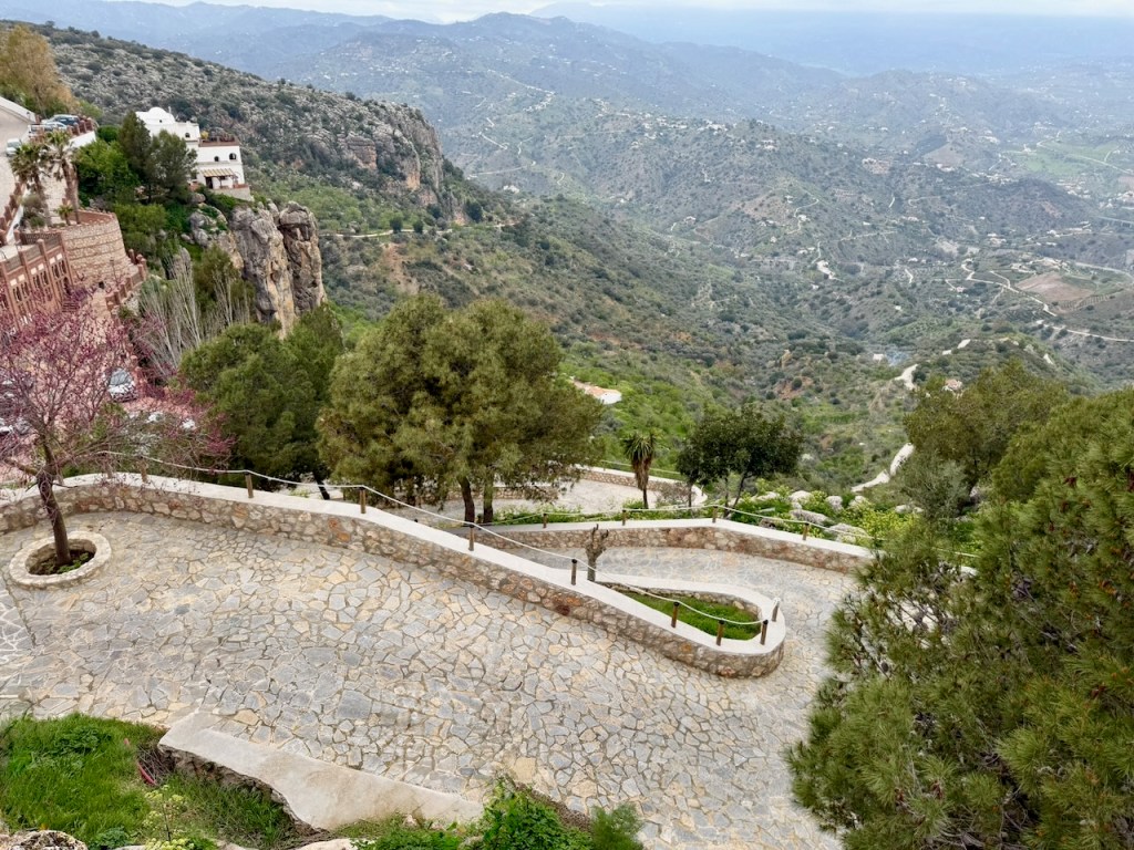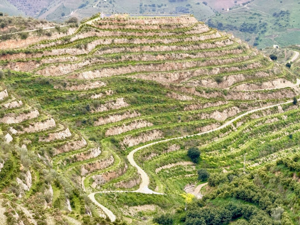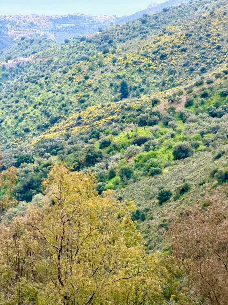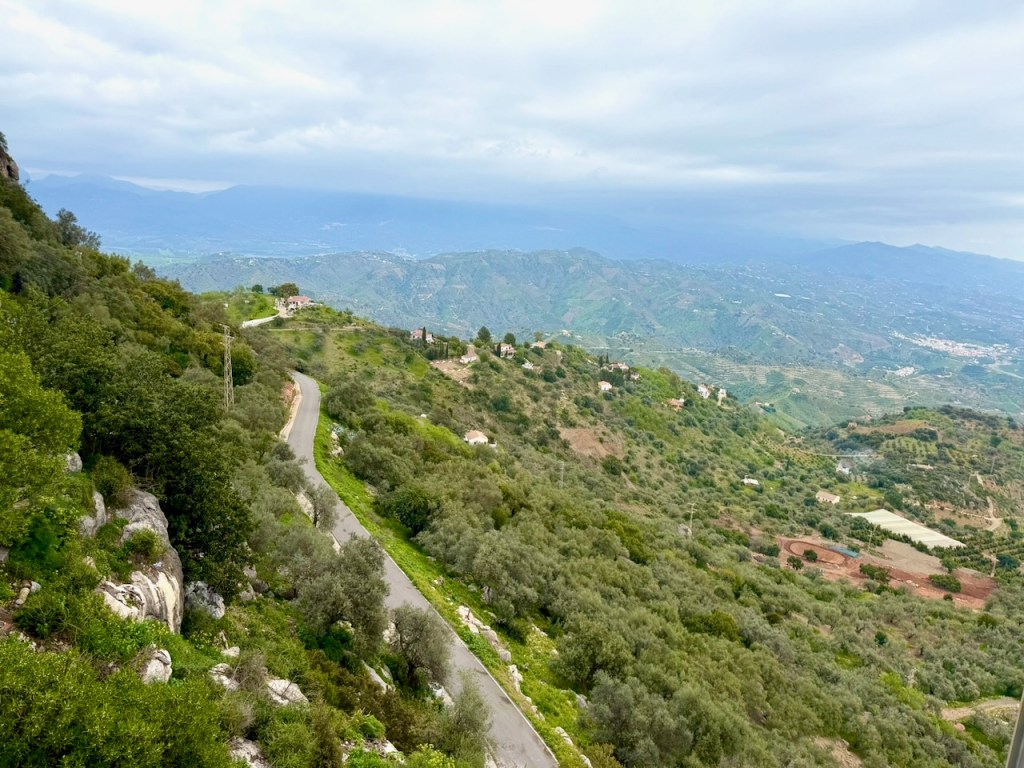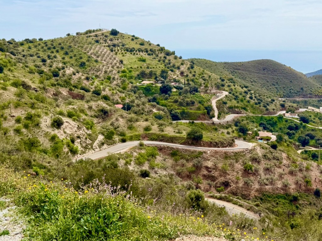 Nyt maaliskuussa 2026 valitsimme helpoimman ajettavan reitin, eli alas Velez-Malagaan ja siitä Rincon de la Victorian ja Malagan kautta takaisin. Helpoin ajettava, vaikkakin kilometrejä enemmän. Mutta maisemat eivät taaskaan olleet pettymys. Aivan huikeita. Piti jälleen pysähdellä ja katsoa rinteitä, kyliä ja puutarhoja.
