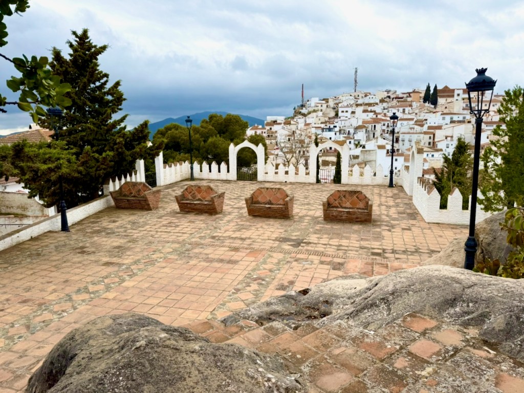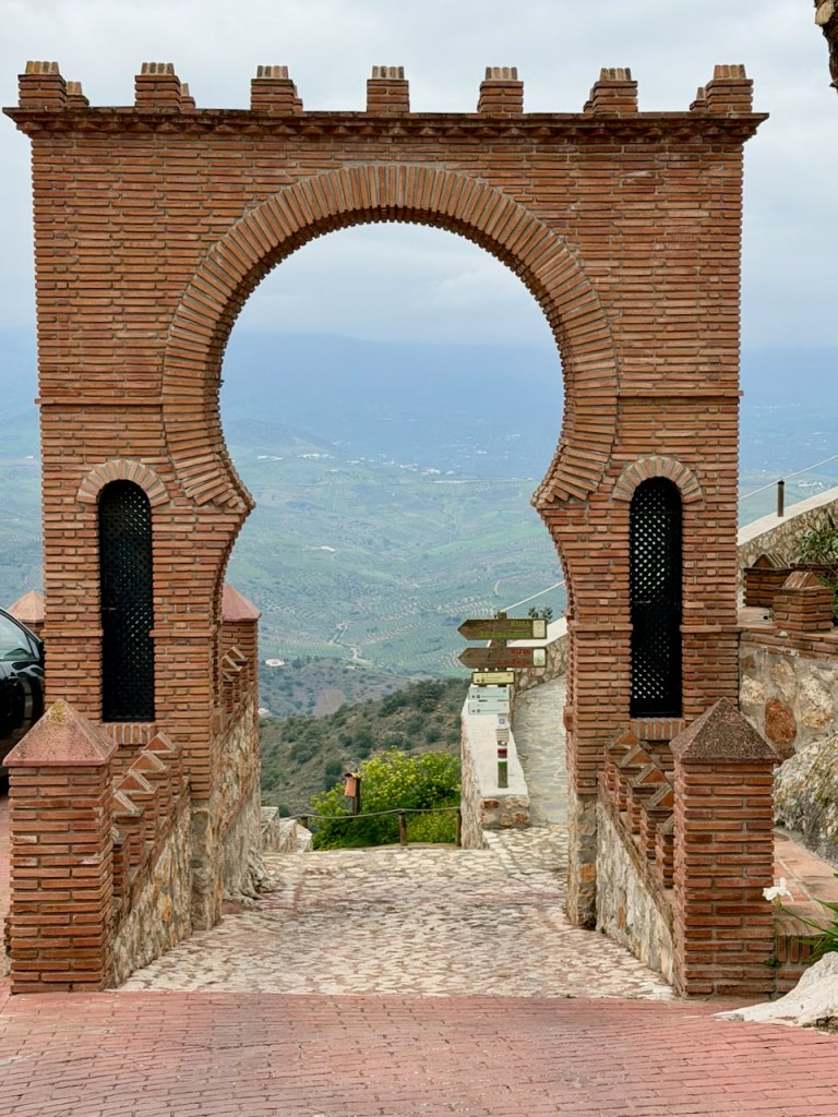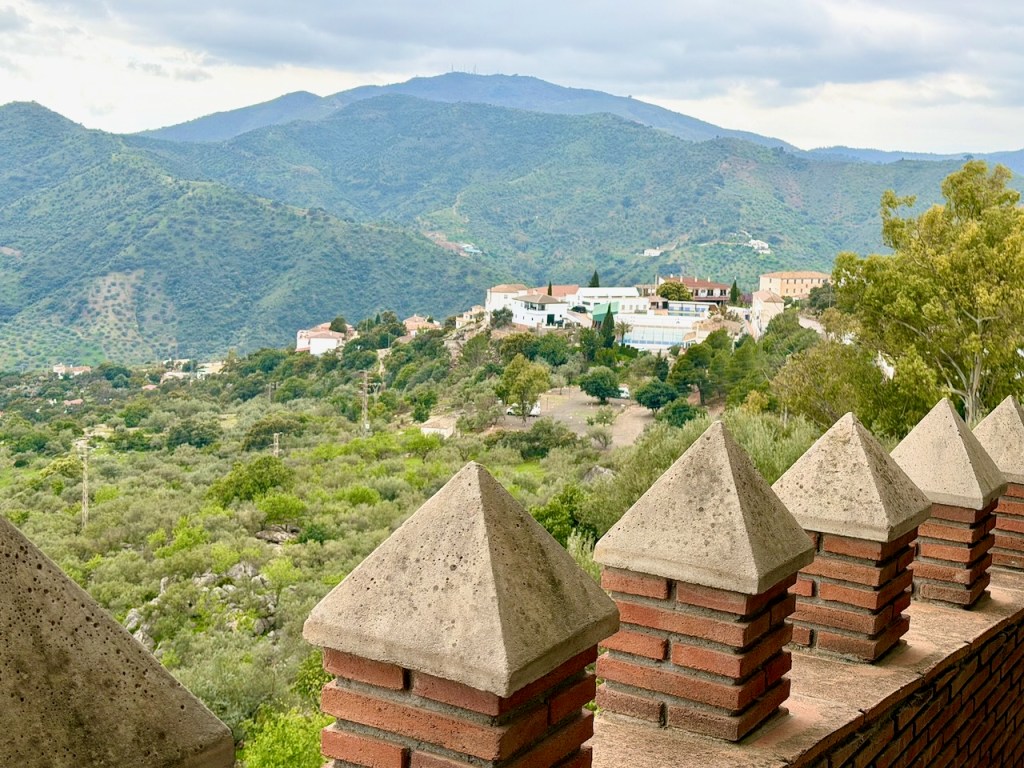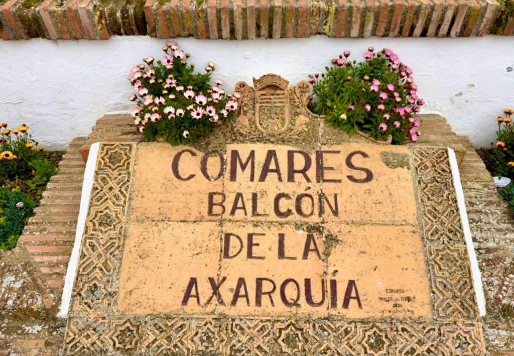 On upea Axrquian näköalapaikka, yksi parhaita valkoisia kyliä. Jos nimi Comares ei jo valmiiksi tarkoittaisi linnoitusta, joka on kukkulalla, olisin ollut valmis keksimään tuon nimen tälle paikalle itse. Comares on noin 700 metrin korkeudessa ja näkyy parinkymmenen kilometrin päähän rannikolle, vaikka sinne ajaminen kaikkine mutkineen viekin vielä lähes tunnin. Olemme jo ajelleet Comaresiin neljää eri reittiä. Kaikilla puolensa. Linnoituksen paikkana laakson keskellä olevan kukkulan laella se on mitä ihanteellisin. Näkymät ovat avoimet ja hienot joka suuntaan.