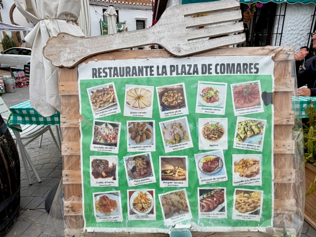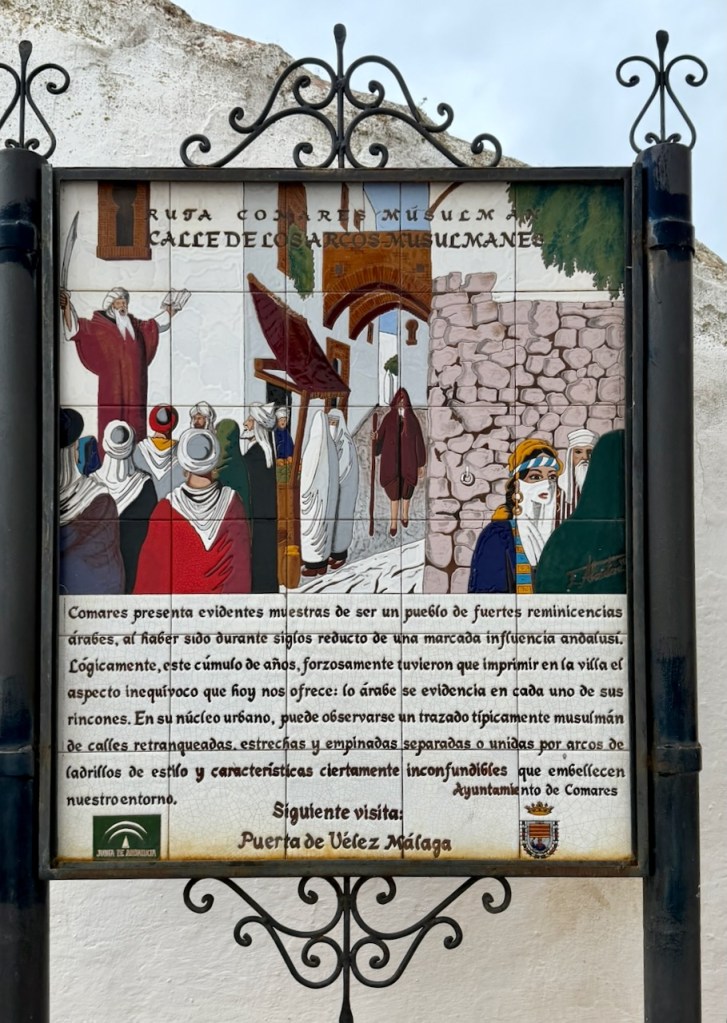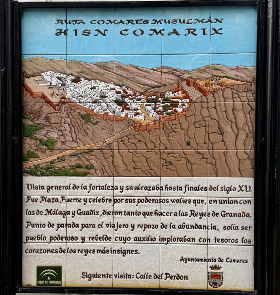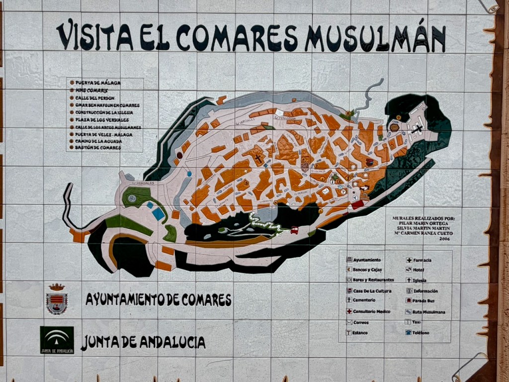 Arkipäivänä käydessämme missään ei näkynyt mitään palveluja turisteille, ei karttoja, esitteitä tai matkamuistoja. Siispä reippaasti itseohjautumaan. Comaresissa tämä on tehty helpoksi. Kaupungin kartta löytyy näköalaterassin vierestä seinältä ja samalla esitellään kylässä esillä olevat muslimien historiaa kuvaavat keraamiset taulut.