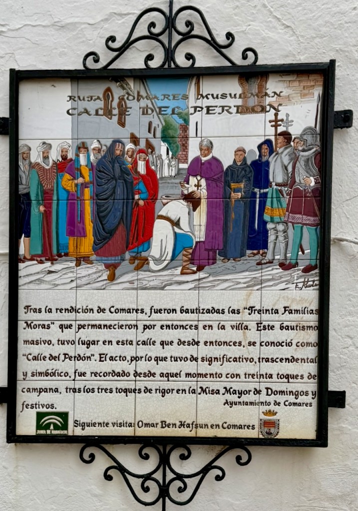 Seuraavassa taulussa kerrotaan, mistä Calle de Perdonin nimi tulee. Comaresin antautumisen jälkeen kylään jääneet kolmekymmentä perhettä kastettiin ja paikkaa alettiin nimittää Calle de Perdoniksi eli anteeksiantamisen kaduksi. Massakasteen muistoksi soitetaan kirkonkelloja kolmekymmentä kertaa messussa sunnuntaisin ja juhlapyhinä.