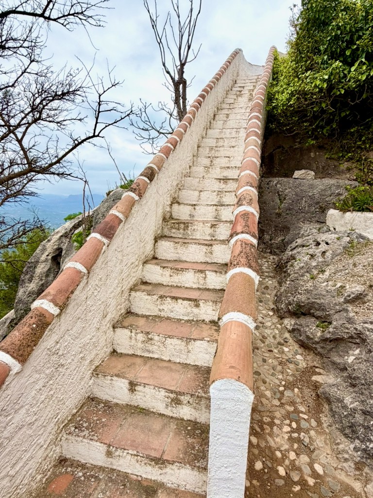 Lähteeltä on tuo pienempi ja jyrkempi polku ylös kaupunkiin. Kiipesin sitä yksin jonkin matkaa, mutta Juhan korkean paikan kammon takia päädyimme lopulta jatkamaan matkaa pientä tietä pitkin kaupungin länsipuolelle.
