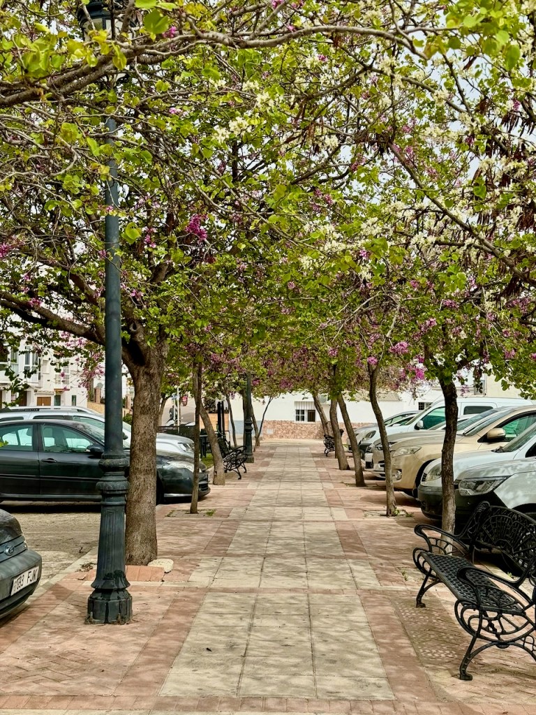 Valkoiset korkeat kylät ovat aina haaste mennä autolla ja löytää parkkipaikka. Löysimme hyvin molemmilla kerroilla. Ensimmäisellä kerralla parkkeerasimme siistille ja kauniille Calle de Vereda Anchalle.