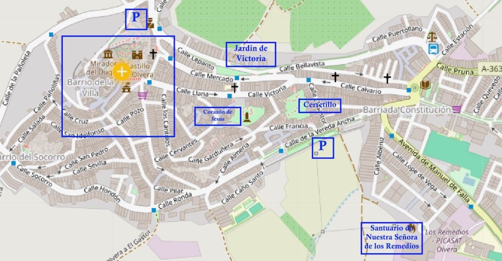 Barrio de la Villa on Olveran vanhin yli 700 vuotta vanha kaupunginosa, jolla on arabialainen alkuperä. Tämän päivän turistille söpöjä pikkukatuja, kukkaruukkuja siellä täällä.